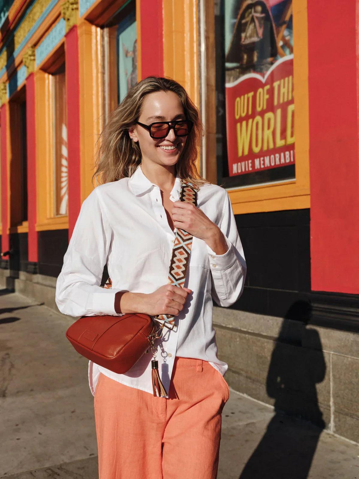 - Pom Pom London City Bag in Burnt Orange - A stylish crossbody bag in a vibrant new season shade.