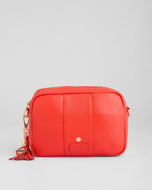 - Premium Leather - Crafted from 100% full-grain leather in a bold red finish.