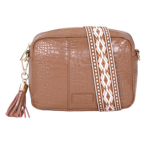 - Pom Pom London Original Bag Croc in Caramel - A premium crossbody in textured croc-embossed leather.