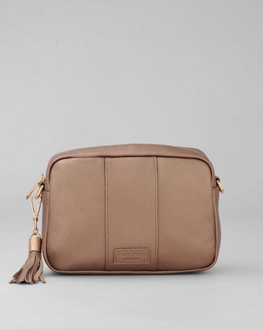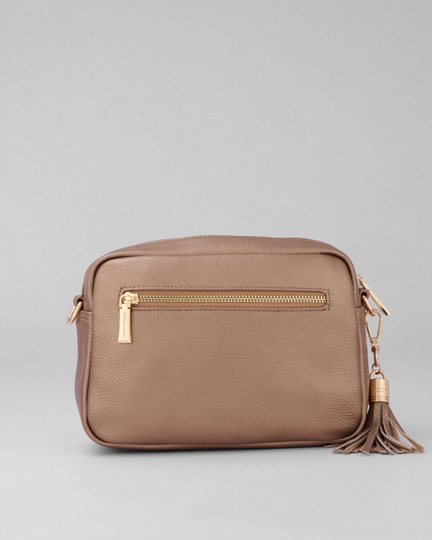- Pom Pom London City Bag in Metallic Bronze - A statement crossbody that shines from day to night.