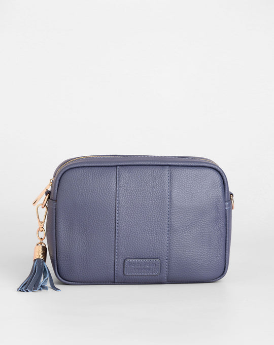 Pom Pom London City Bag in Slate Blue - A classic crossbody bag in a timeless core colour.