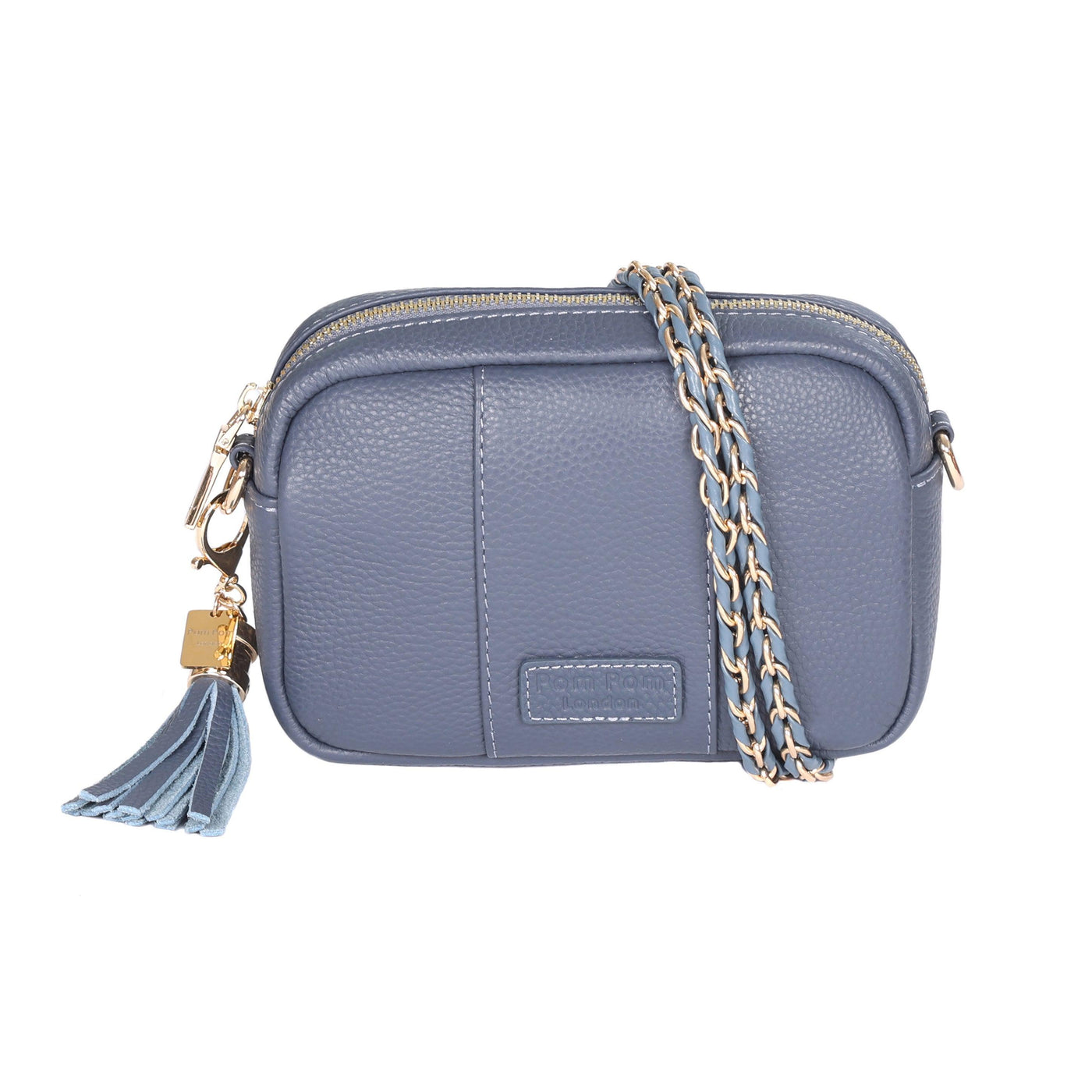 • Pom Pom London City Mini Bag in Slate Blue - A classic crossbody bag in a timeless core colour.