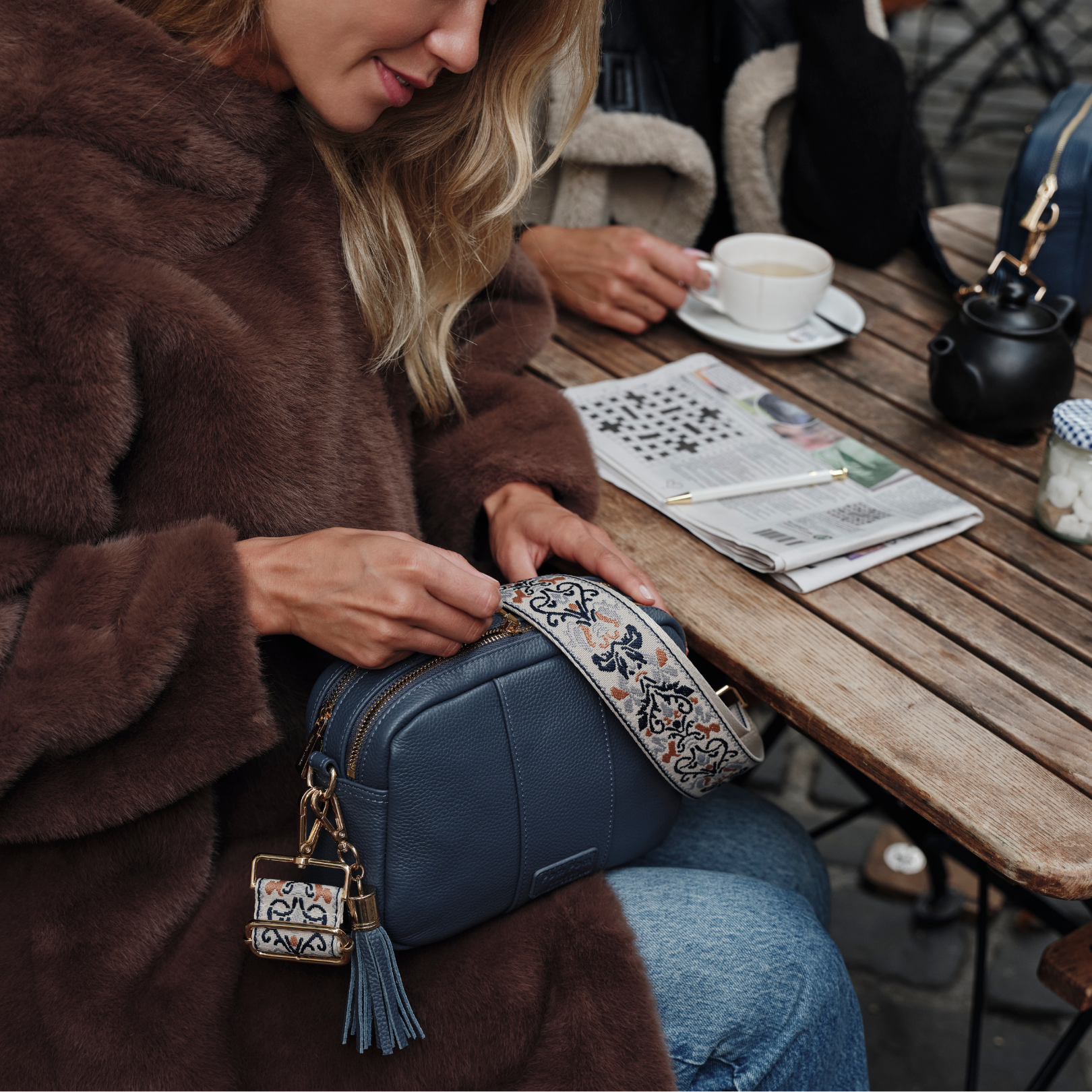 - Pom Pom London City Duo Bag in Slate Blue - A classic crossbody bag in a timeless core colour.