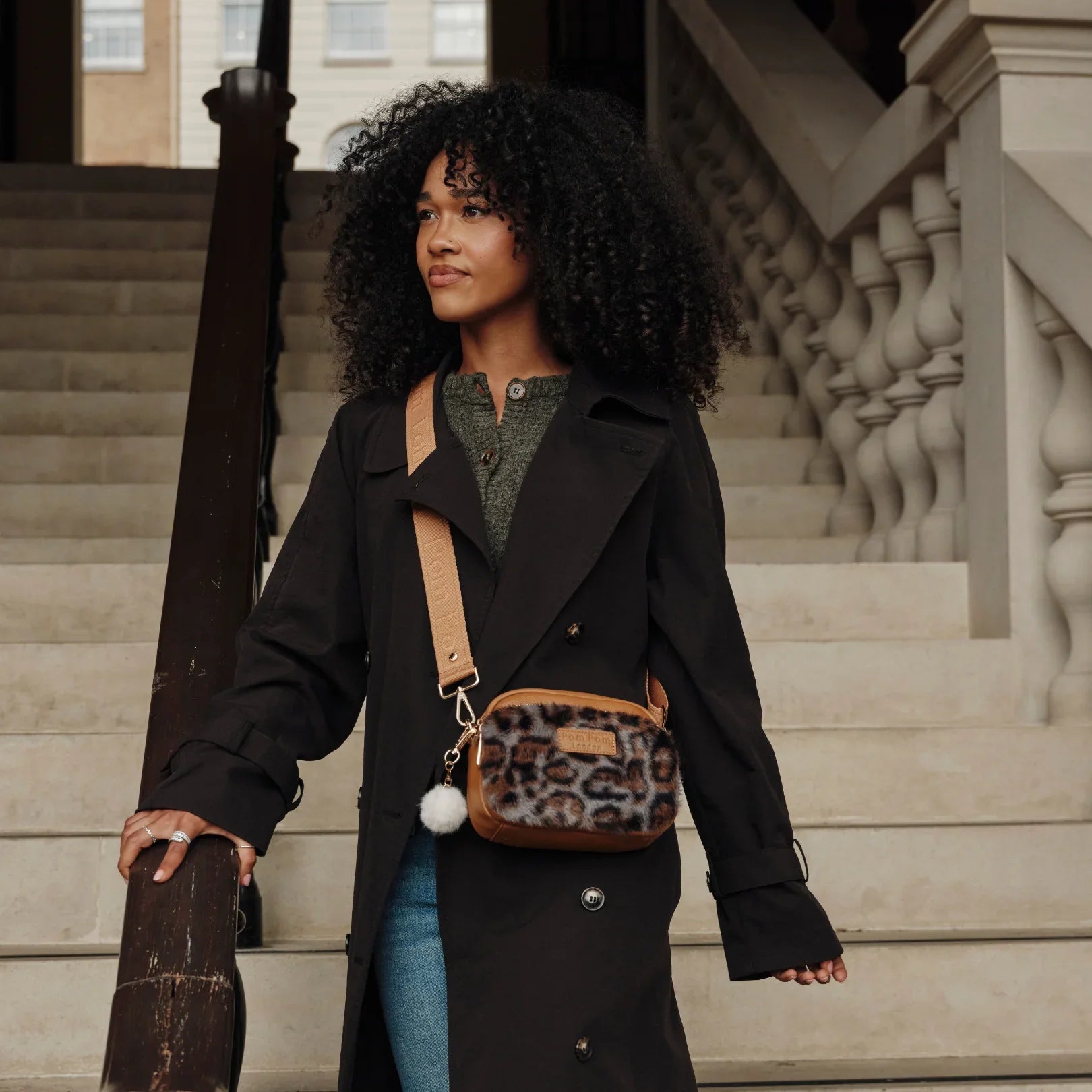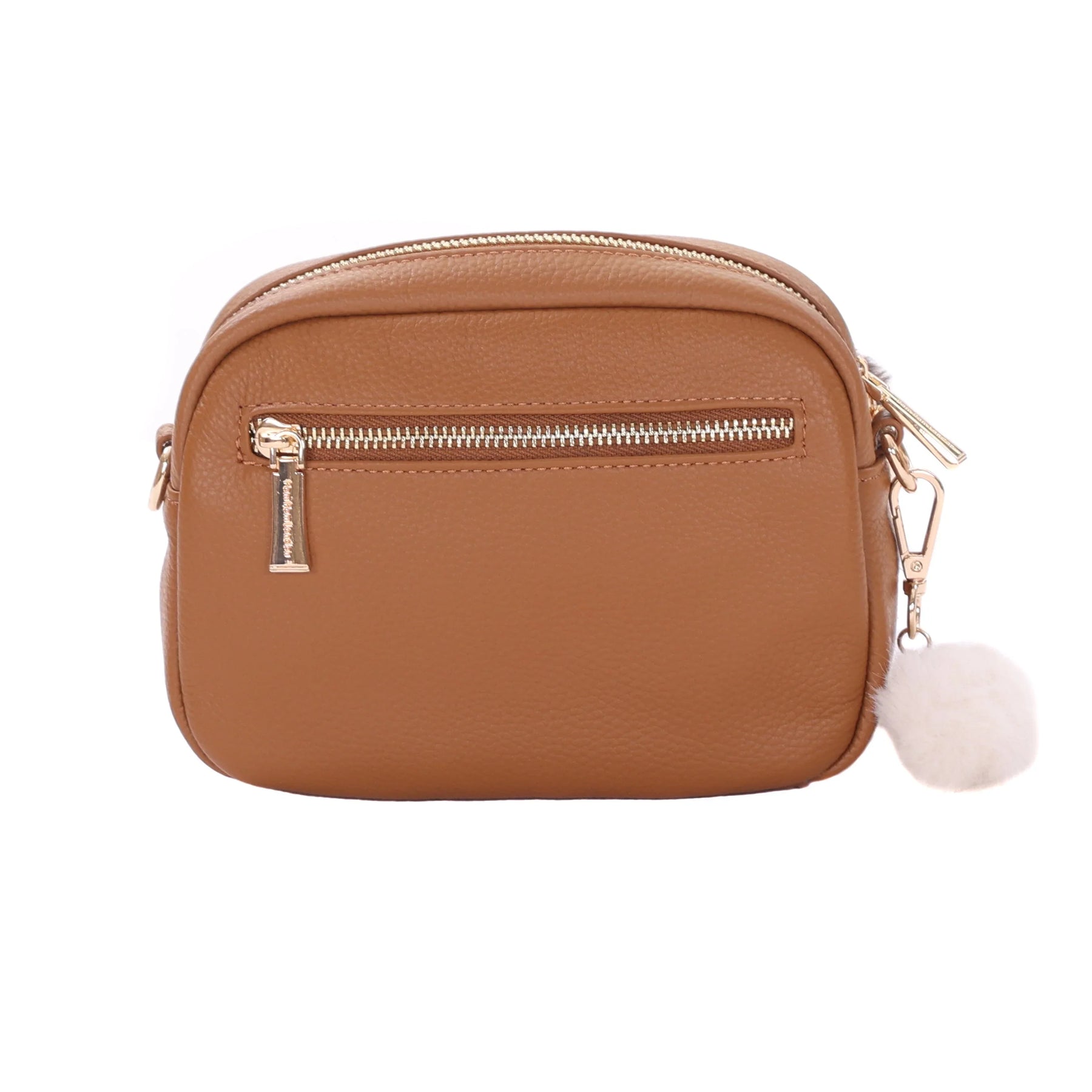 - Pom Pom London Original Bag Leopard Print Faux Fur Bundle in Maple - A stylish leather crossbody with faux fur texture.