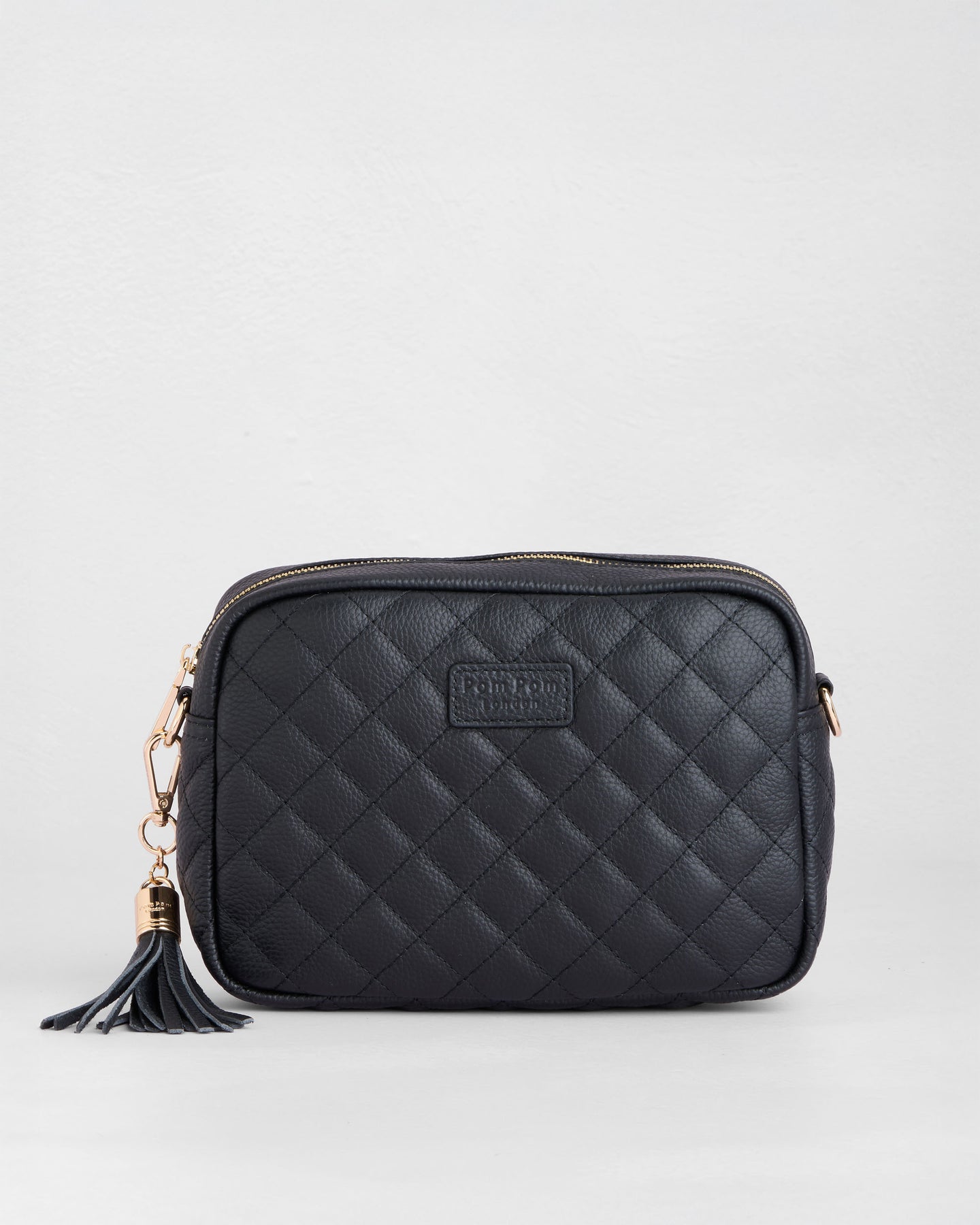 - Pom Pom London Quilted City Bag in Black - A stylish crossbody crafted in quilted full grain leather.