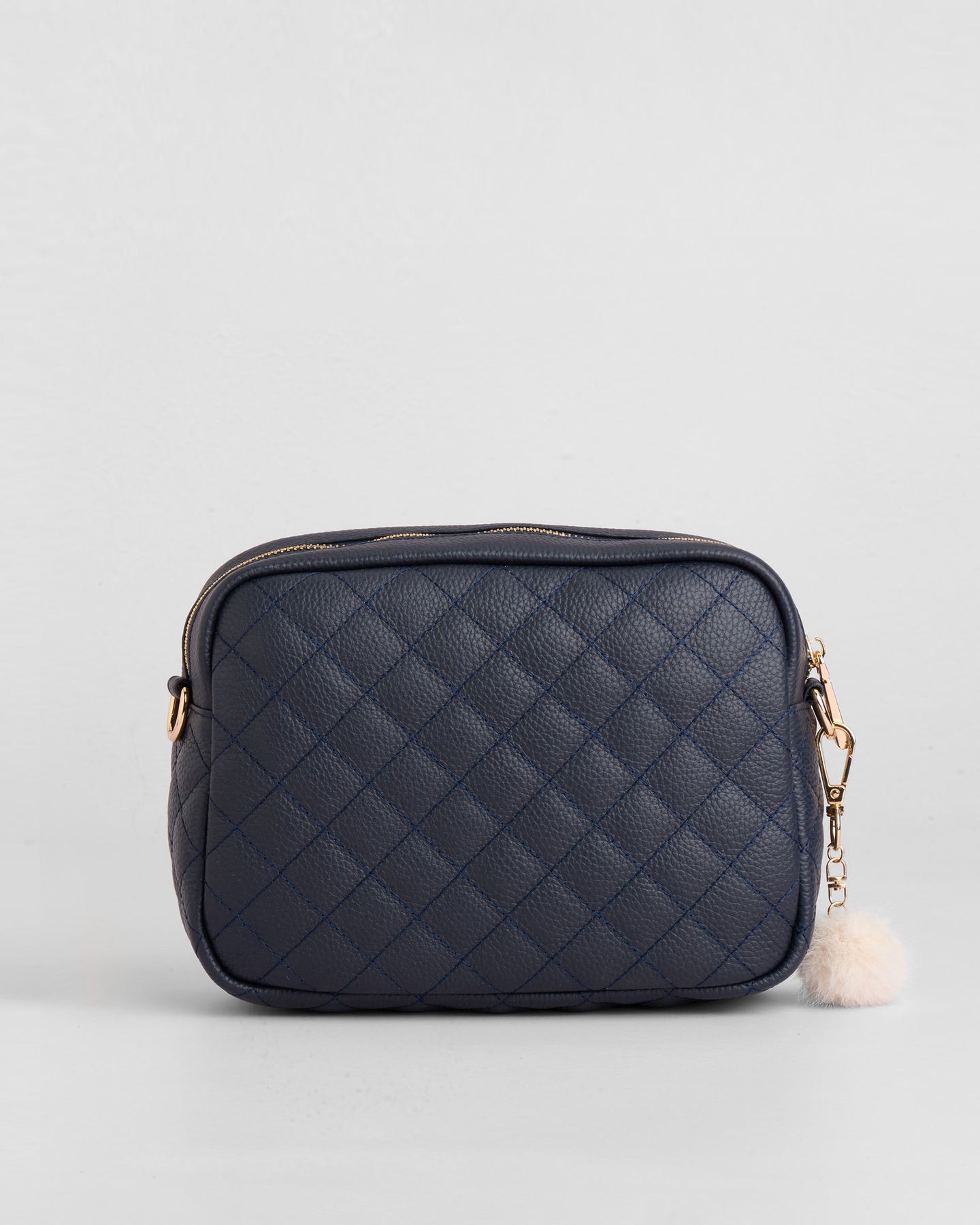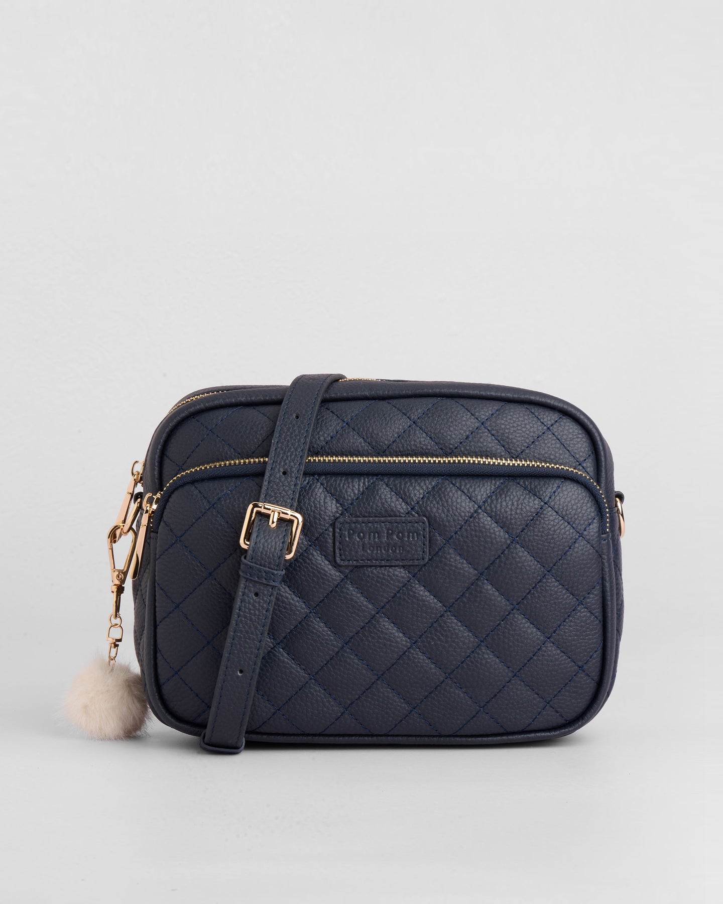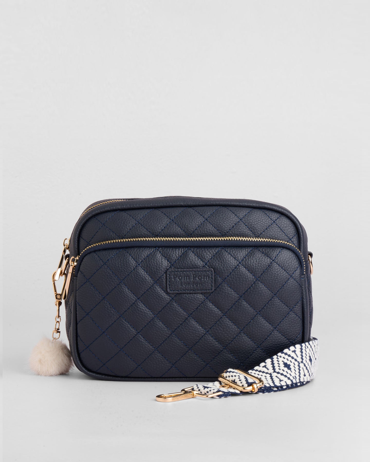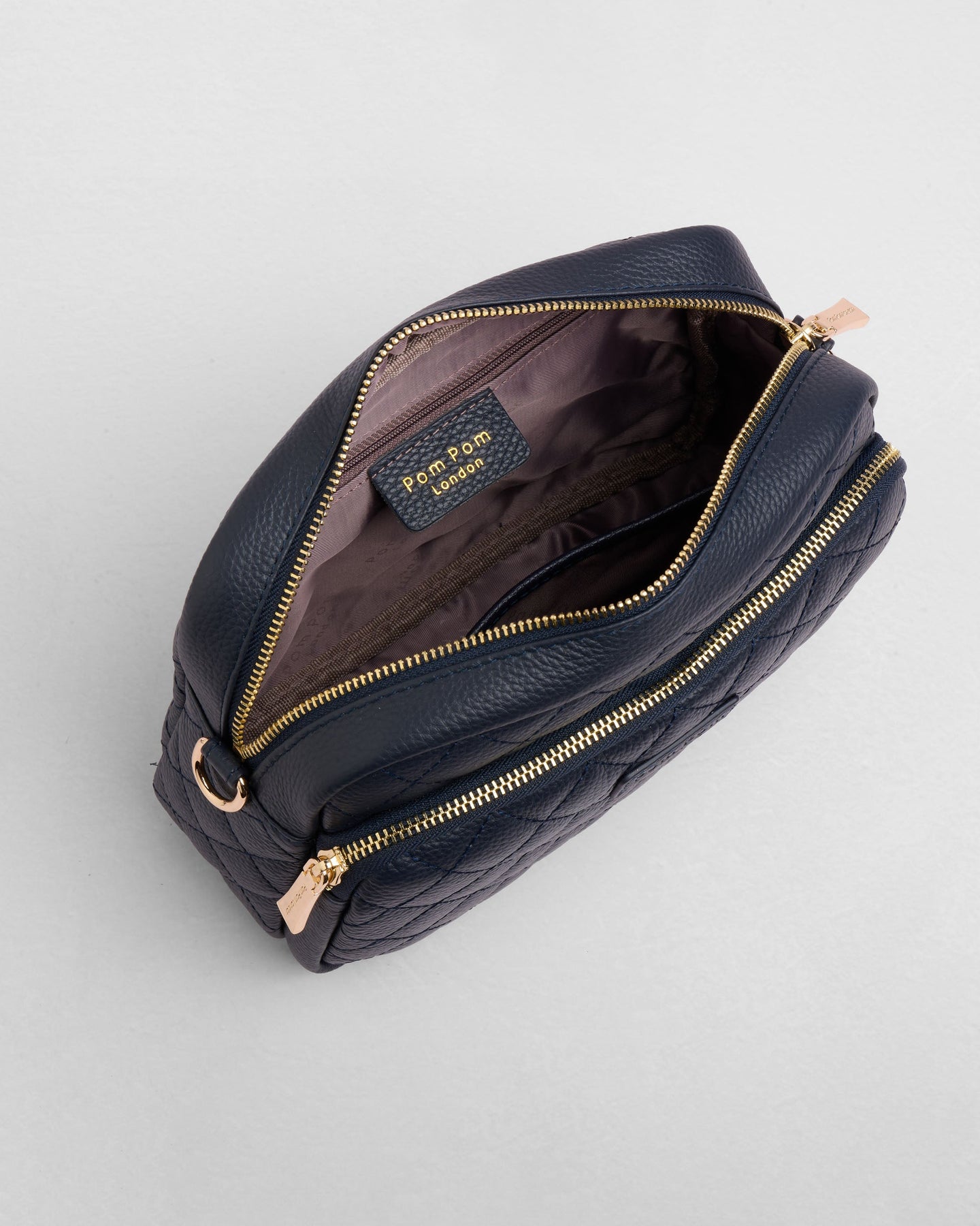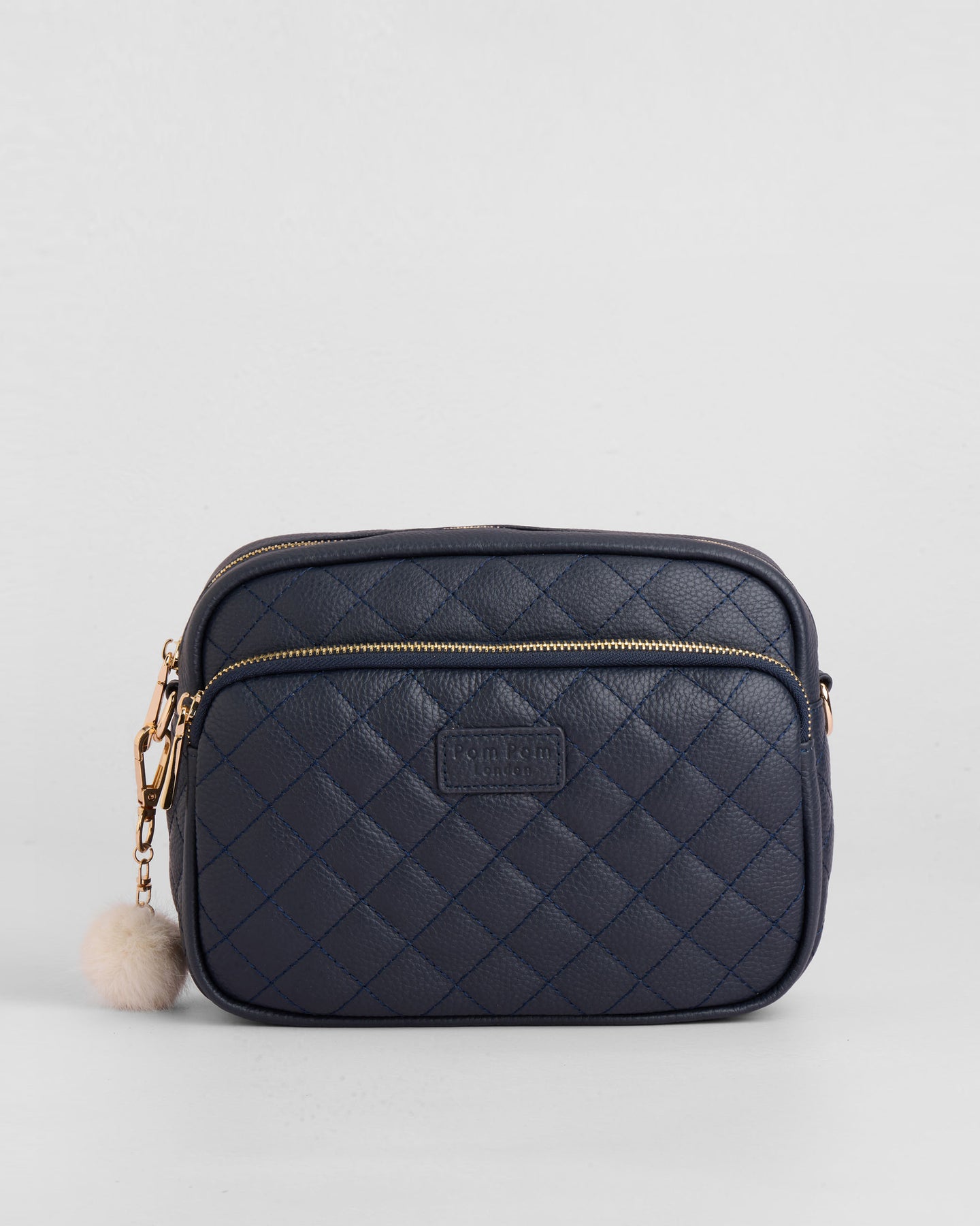 - Pom Pom London Quilted Original Plus Bag in Navy - A stylish crossbody crafted in quilted full grain leather.
