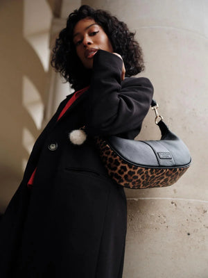 • Pom Pom London Sutton Sling in Leopard Print Black - Finished with bold leopard print details for everyday wear.