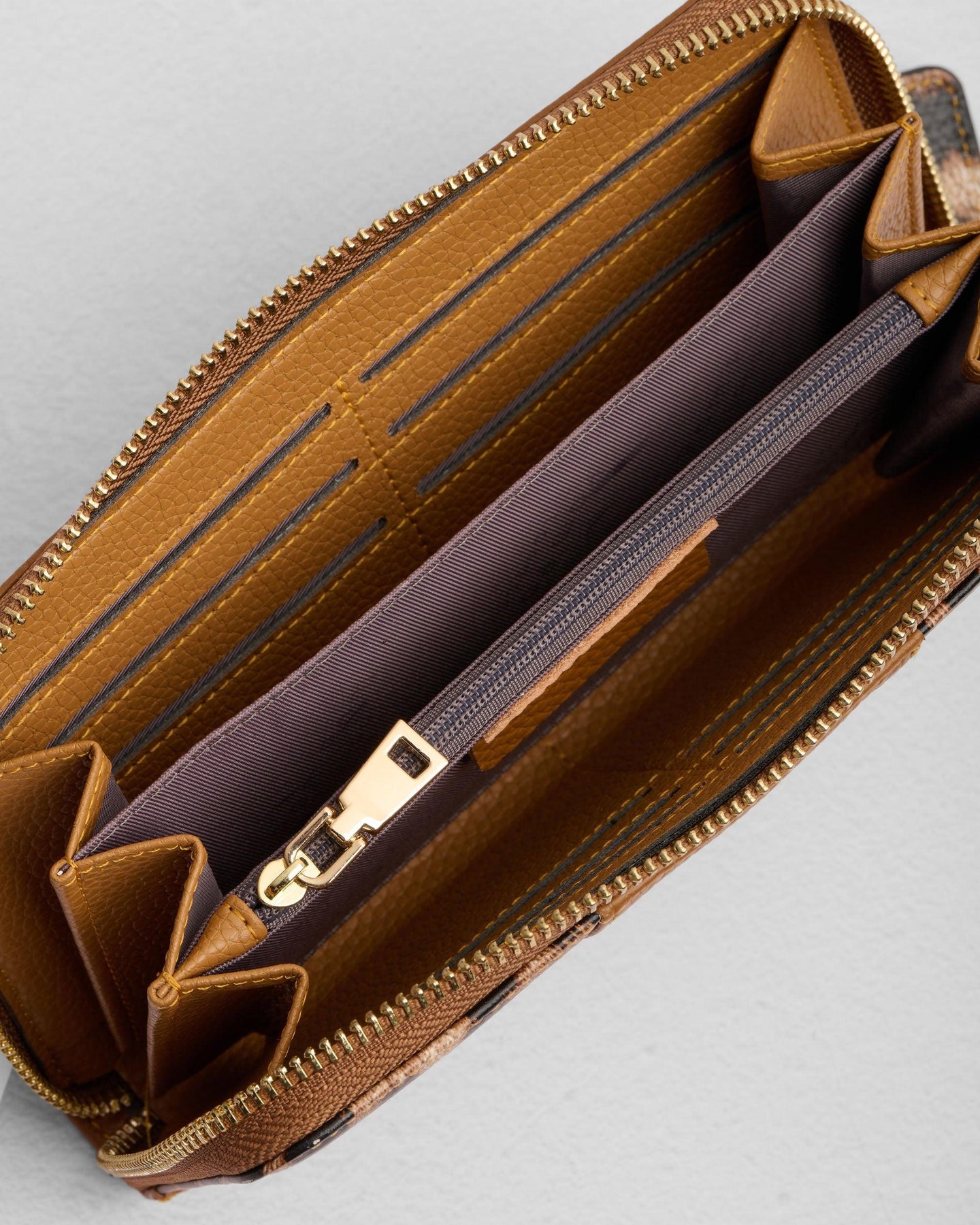 - Smart Storage - Features 12 card slots, a dedicated cash section, and a zip pocket for coins.