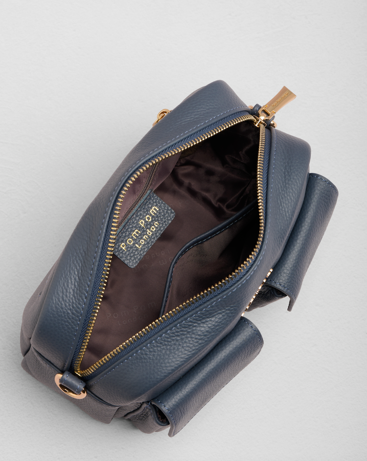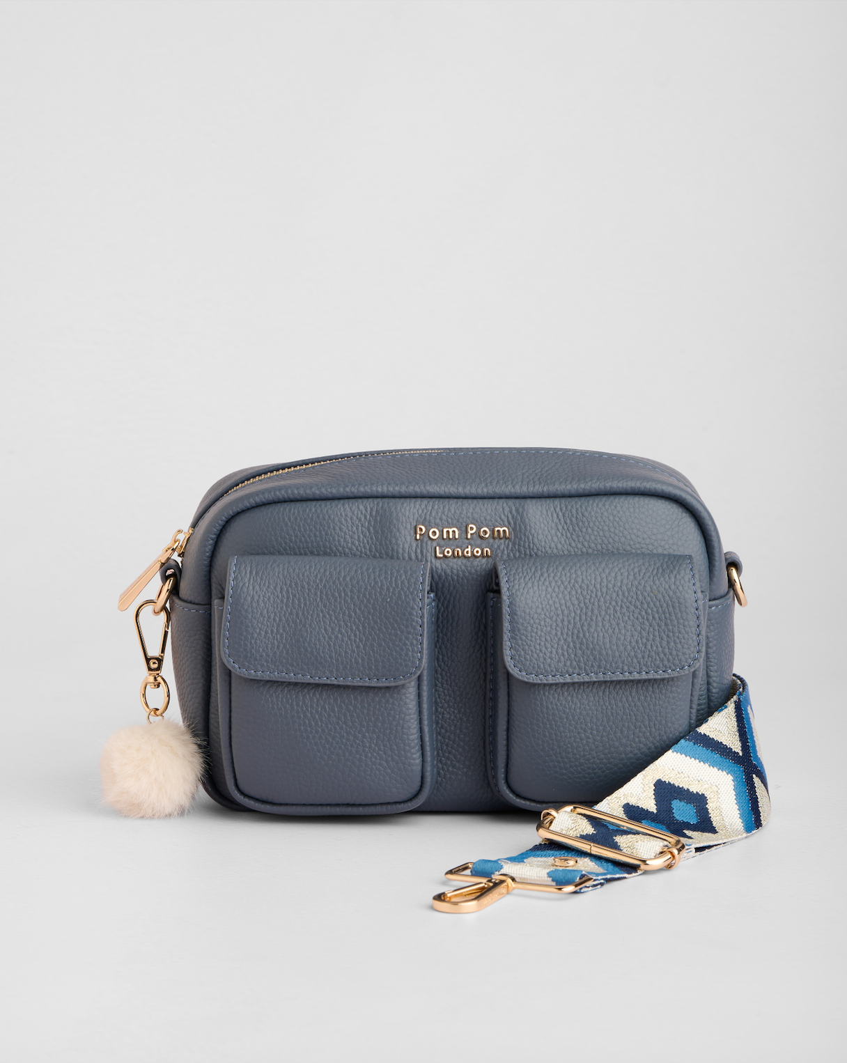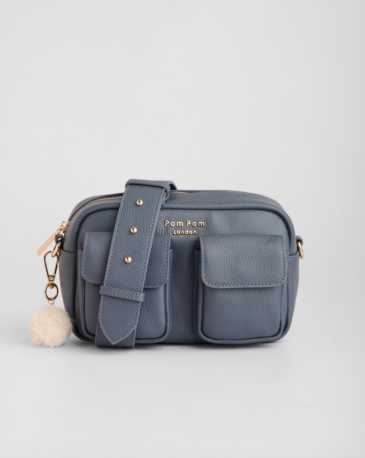 - Pom Pom London Chiswick Cargo Bag in Slate Blue - A versatile crossbody bag, in a timeless core colour.