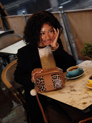 The Original Bag in Leopard Print Maple is a warm, soft take on statement style. Rich maple leather paired with leopard print details creates a standout look that feels modern yet timeless.