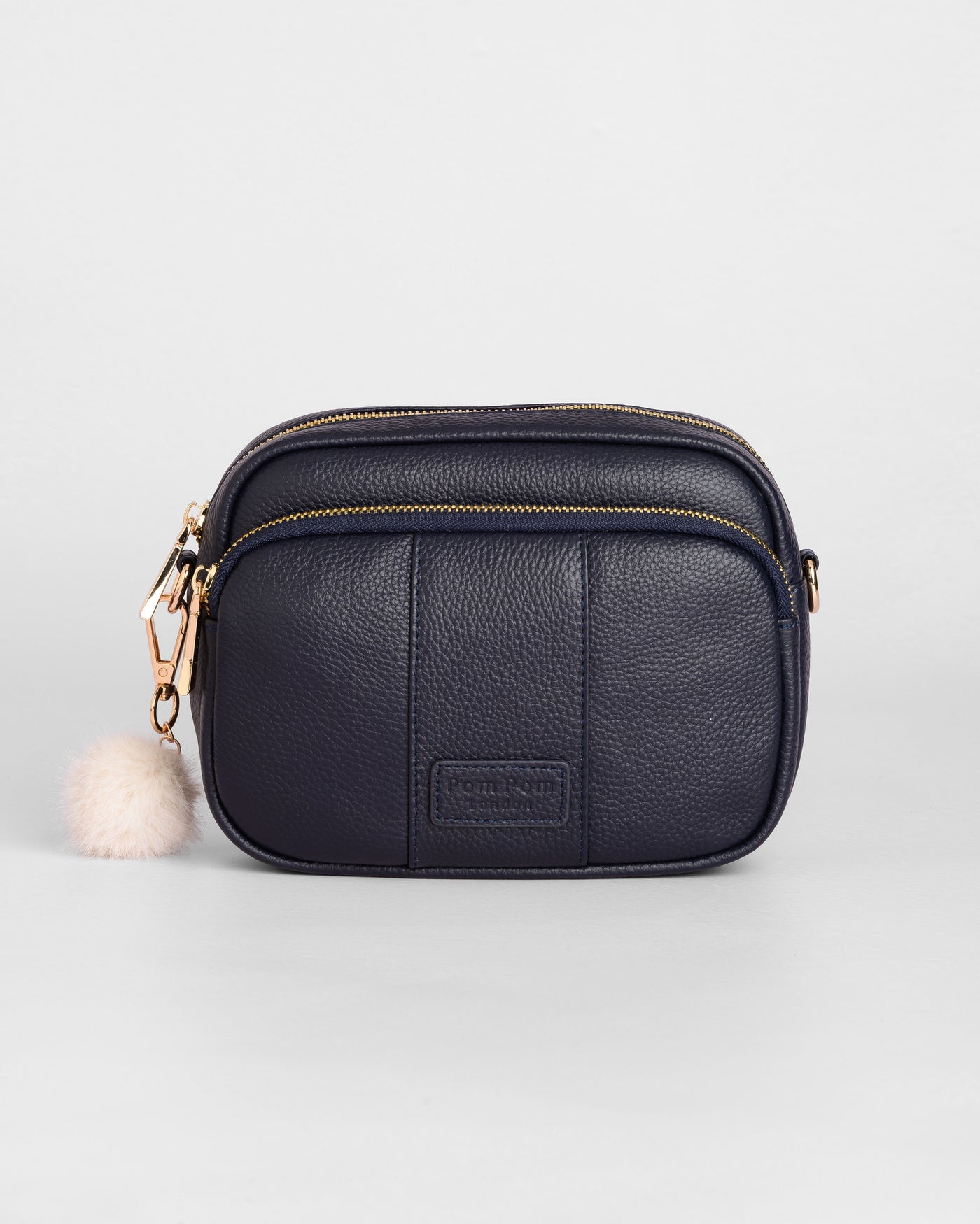 Pom Pom London Original Bag in Navy - A classic crossbody bag in a timeless core colour.
