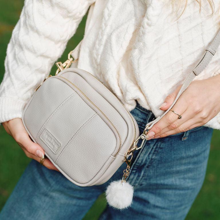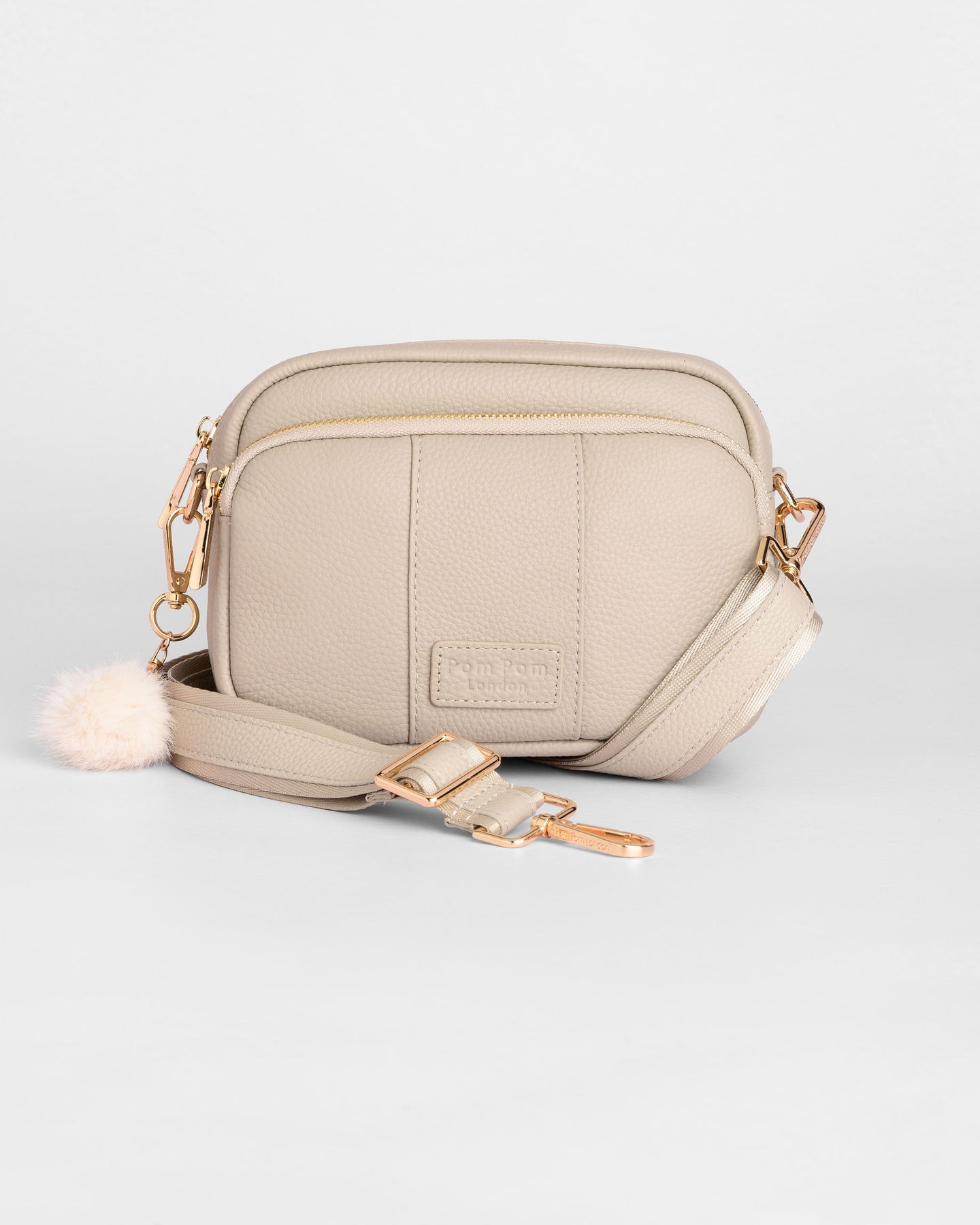 Pom Pom London Original Bag in Stone - A classic crossbody bag in a timeless core colour.