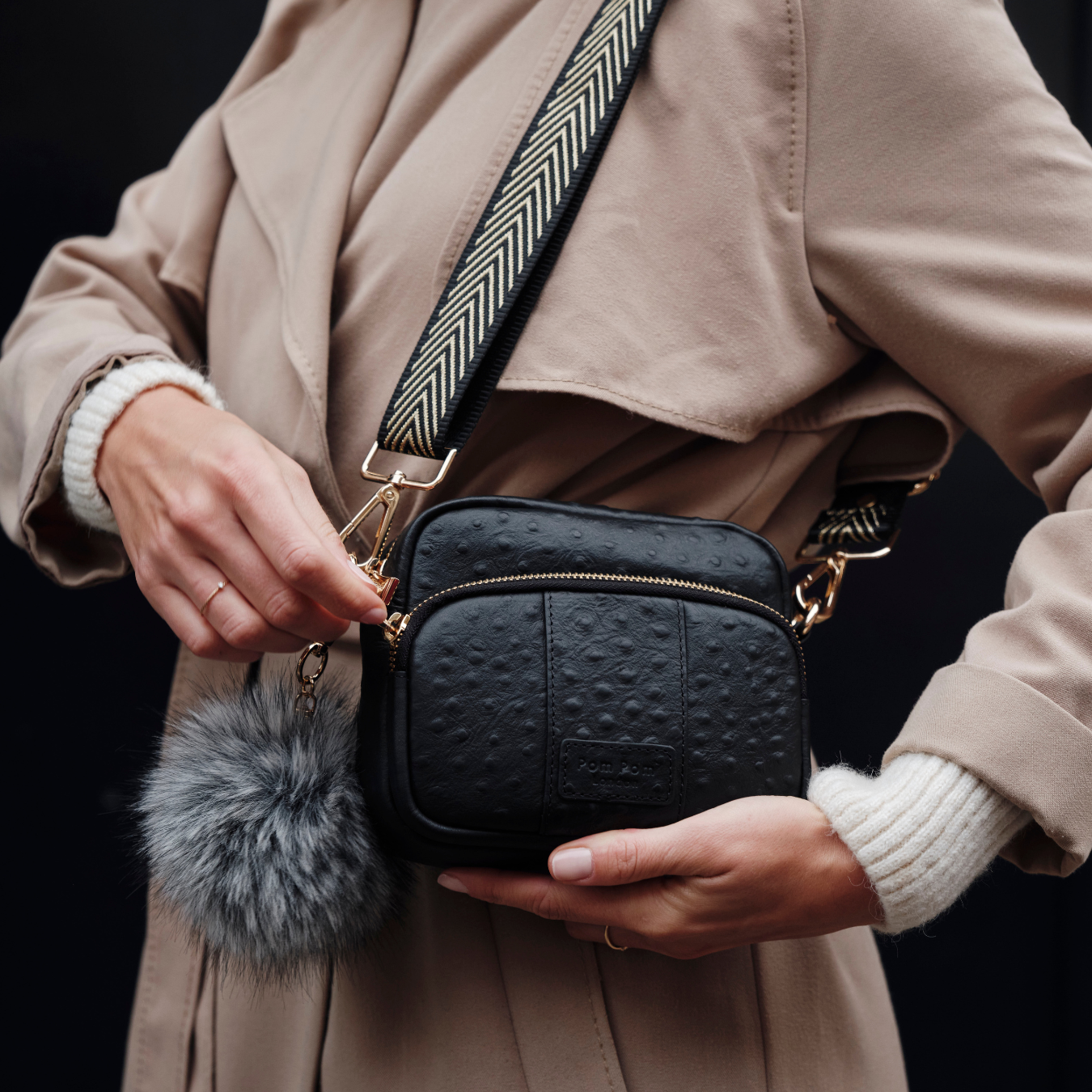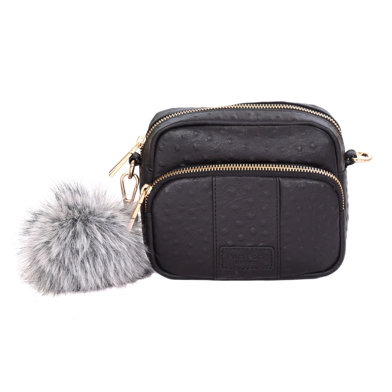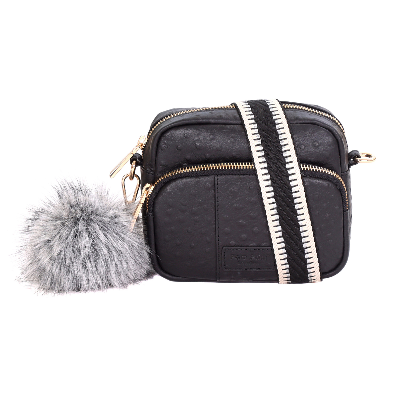 Original MINI Bag Black Ostrich Effect & Accessories-Pom Pom London