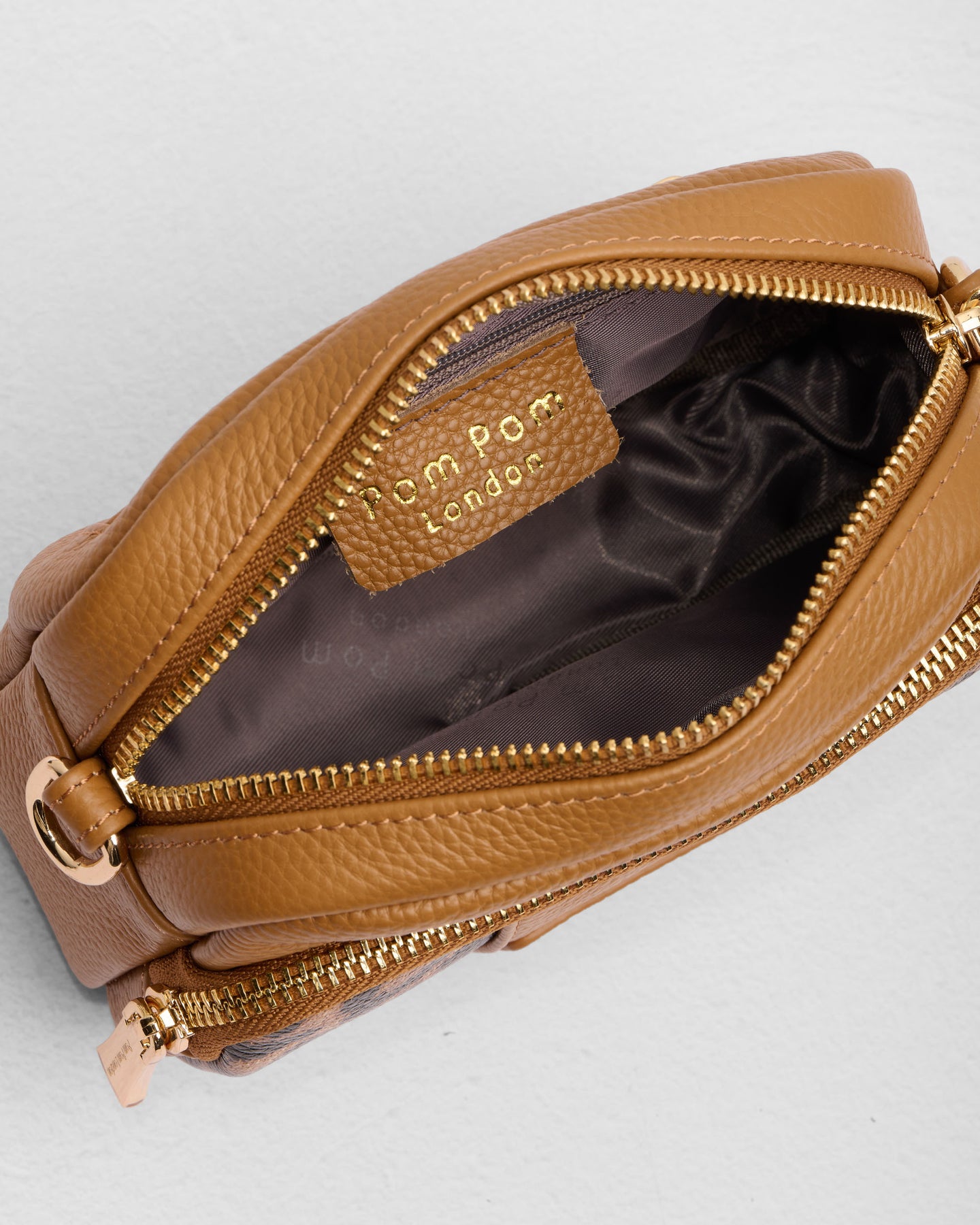 Pom Pom London Original Mini Bag in Leopard Print Maple - Finished with bold leopard print details for everyday wear.