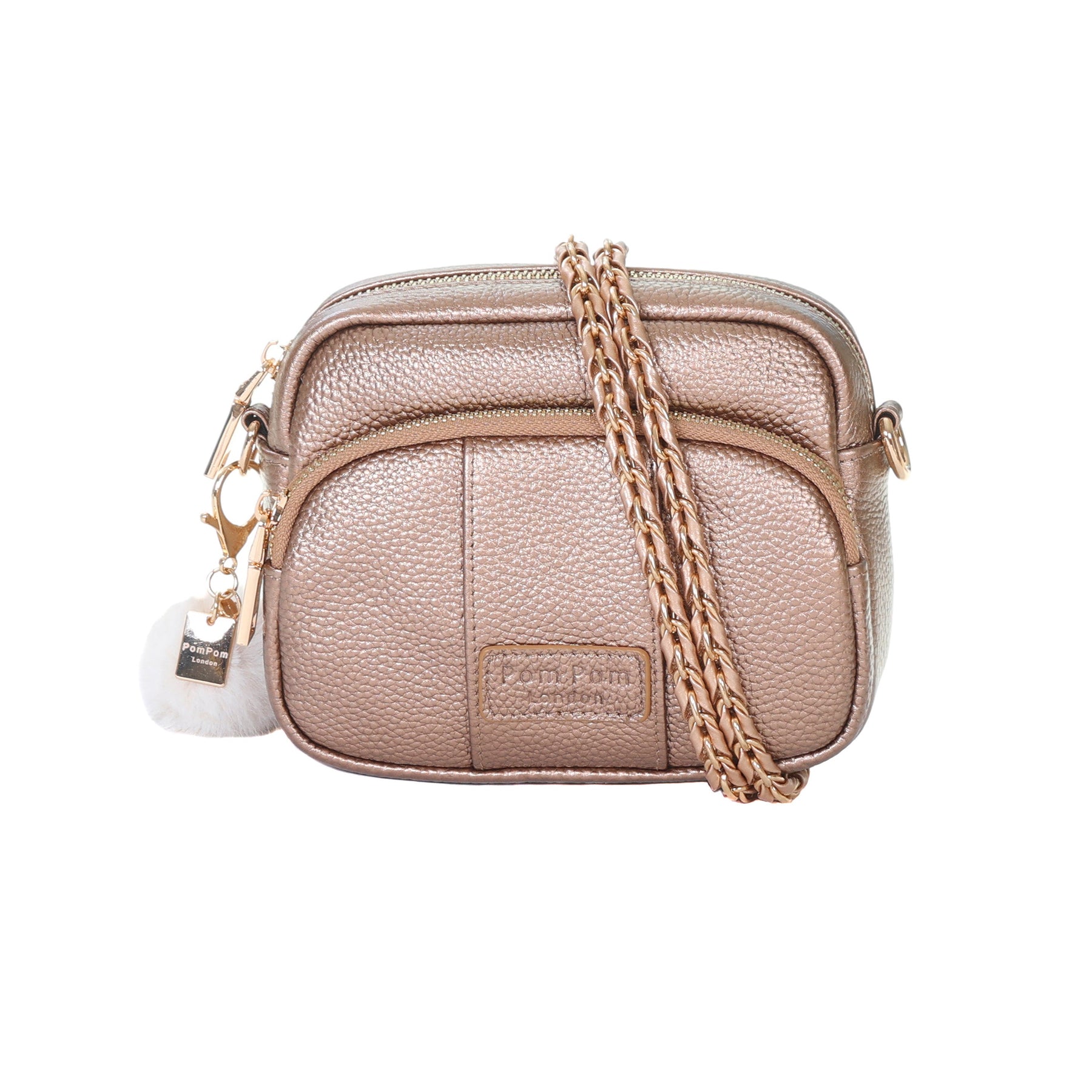 - Pom Pom London Original Mini Bag in Metallic Bronze - A small crossbody that shines from day to night.