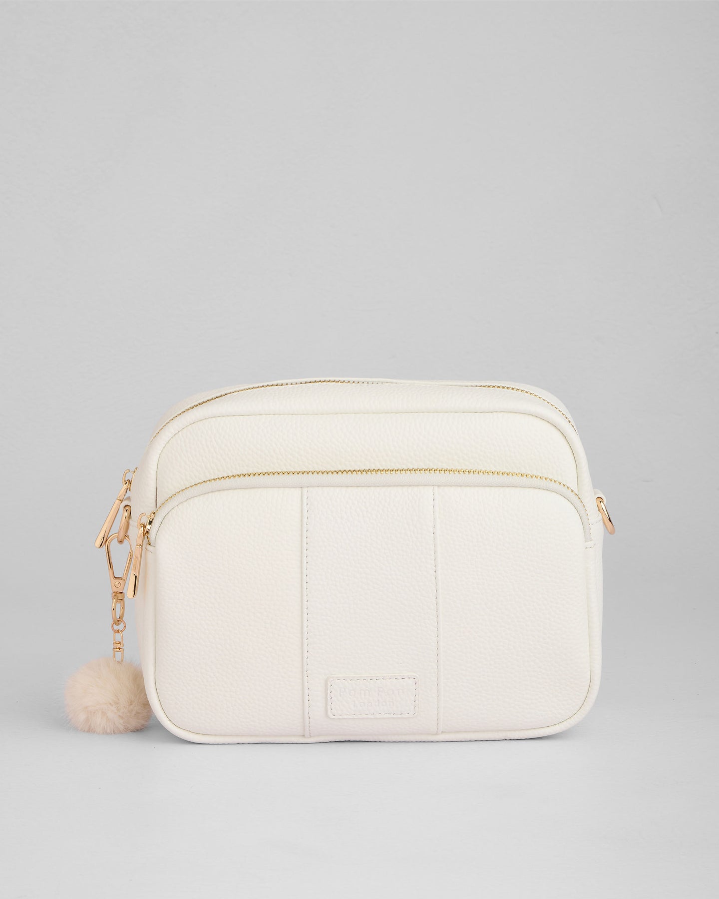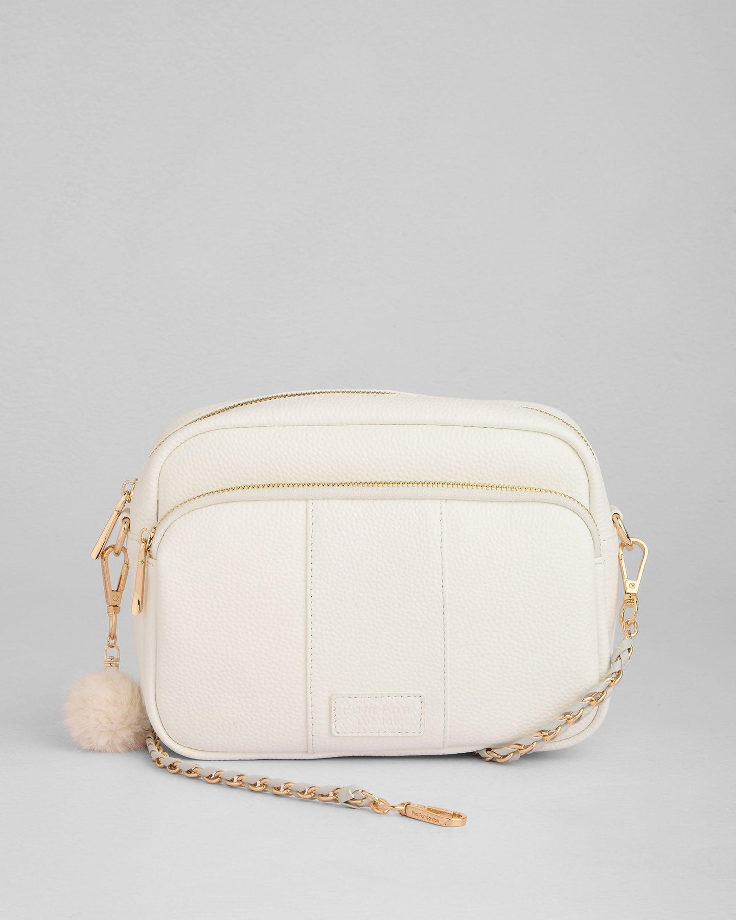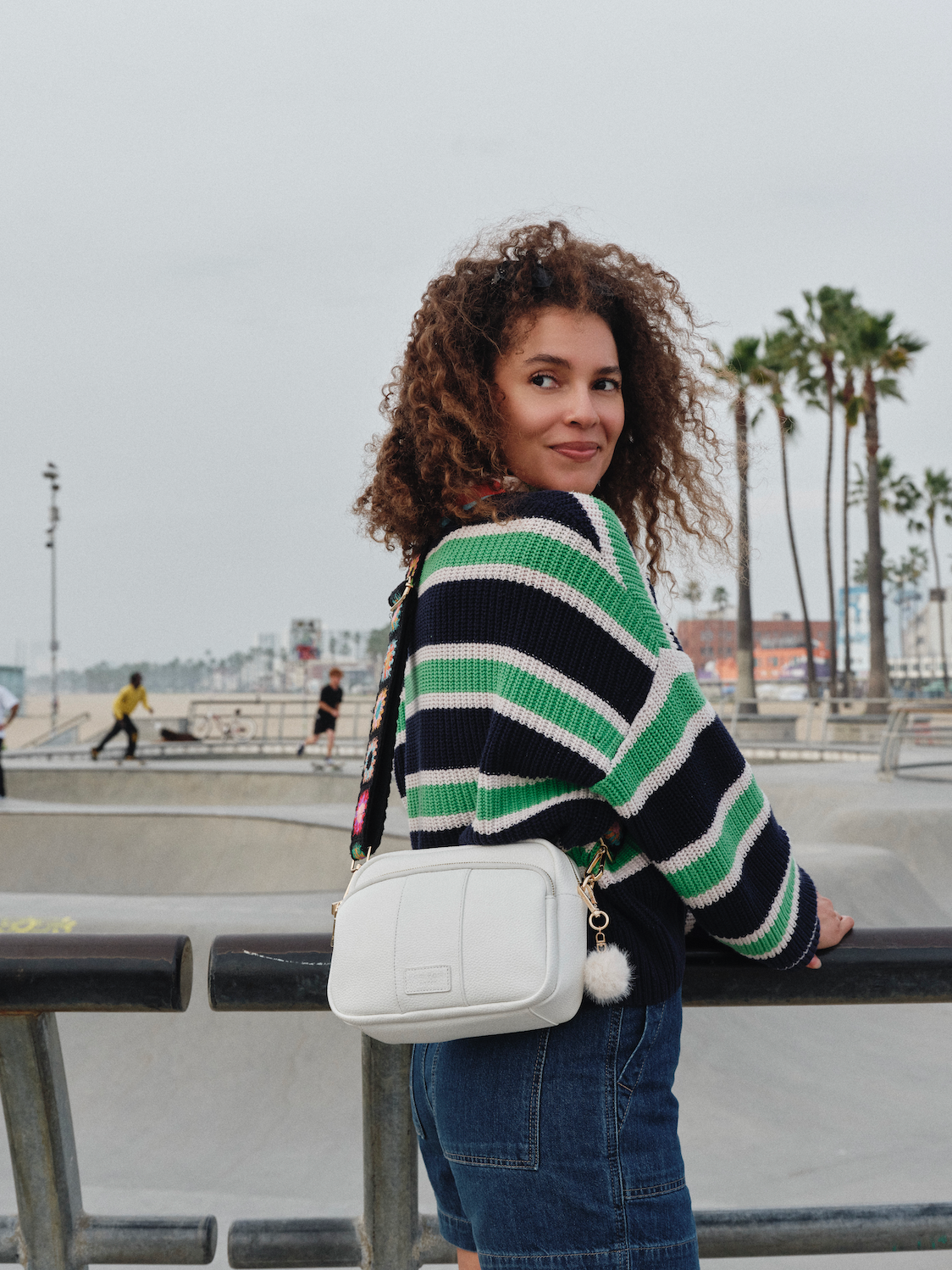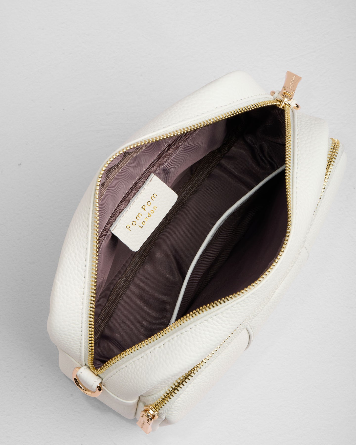 • Pom Pom London Original Plus Bag in Bright White - A stylish crossbody bag in a vibrant new season shade.
