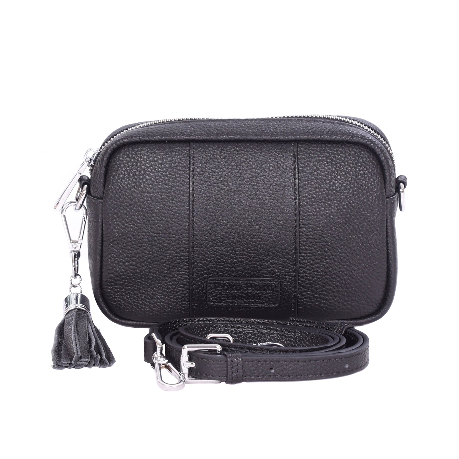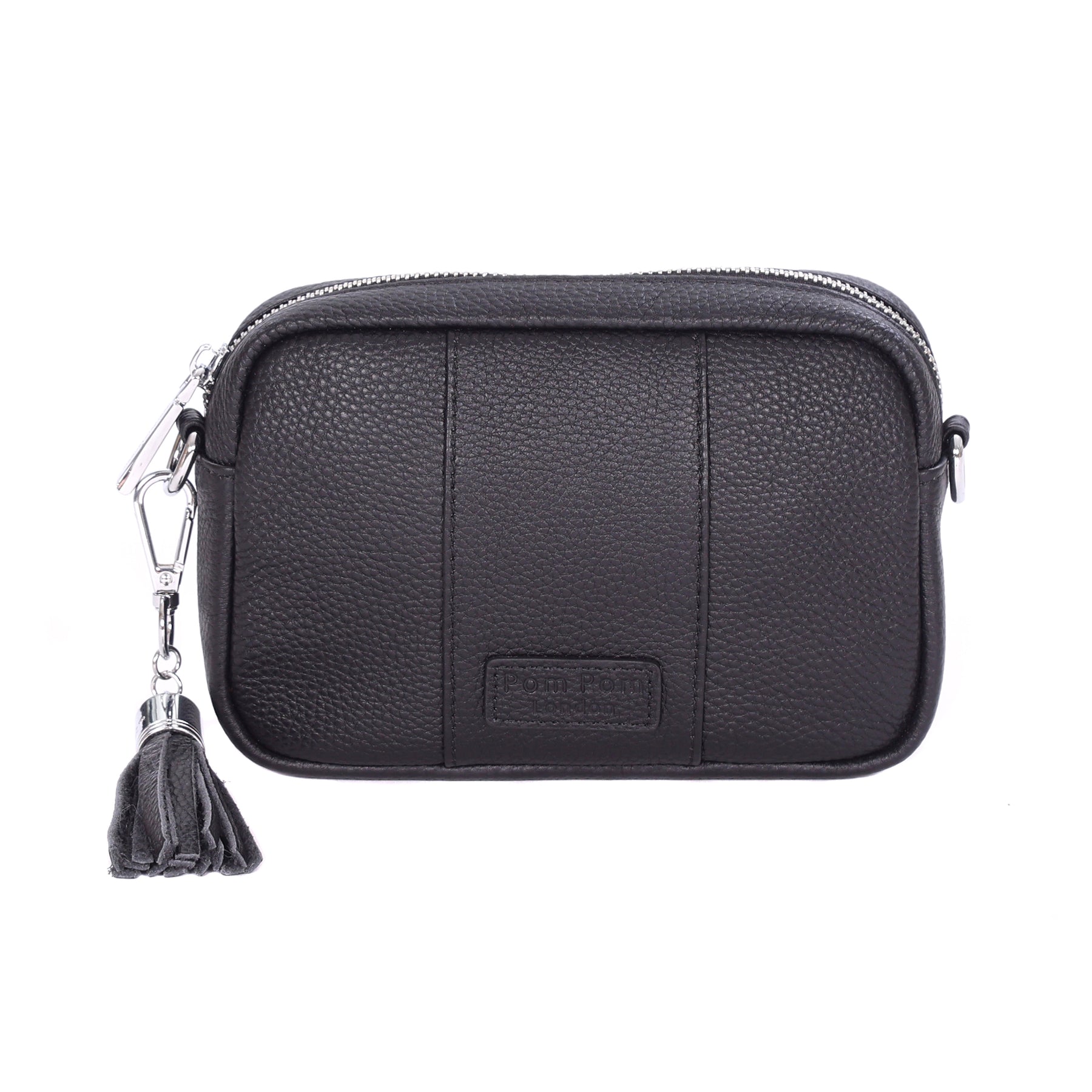 • Pom Pom London City Mini Bag in Black (Silver Hardware) - A compact everyday crossbody with a polished new finish.