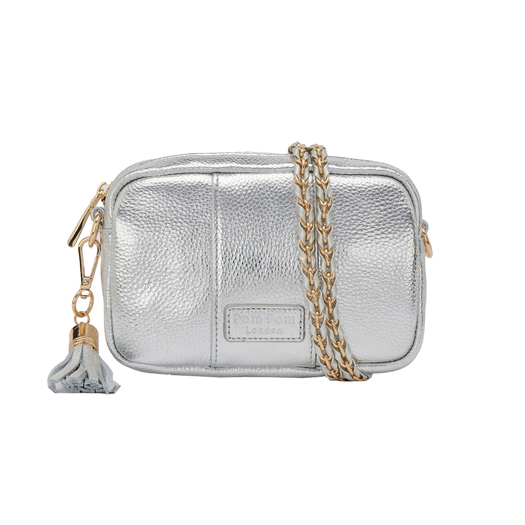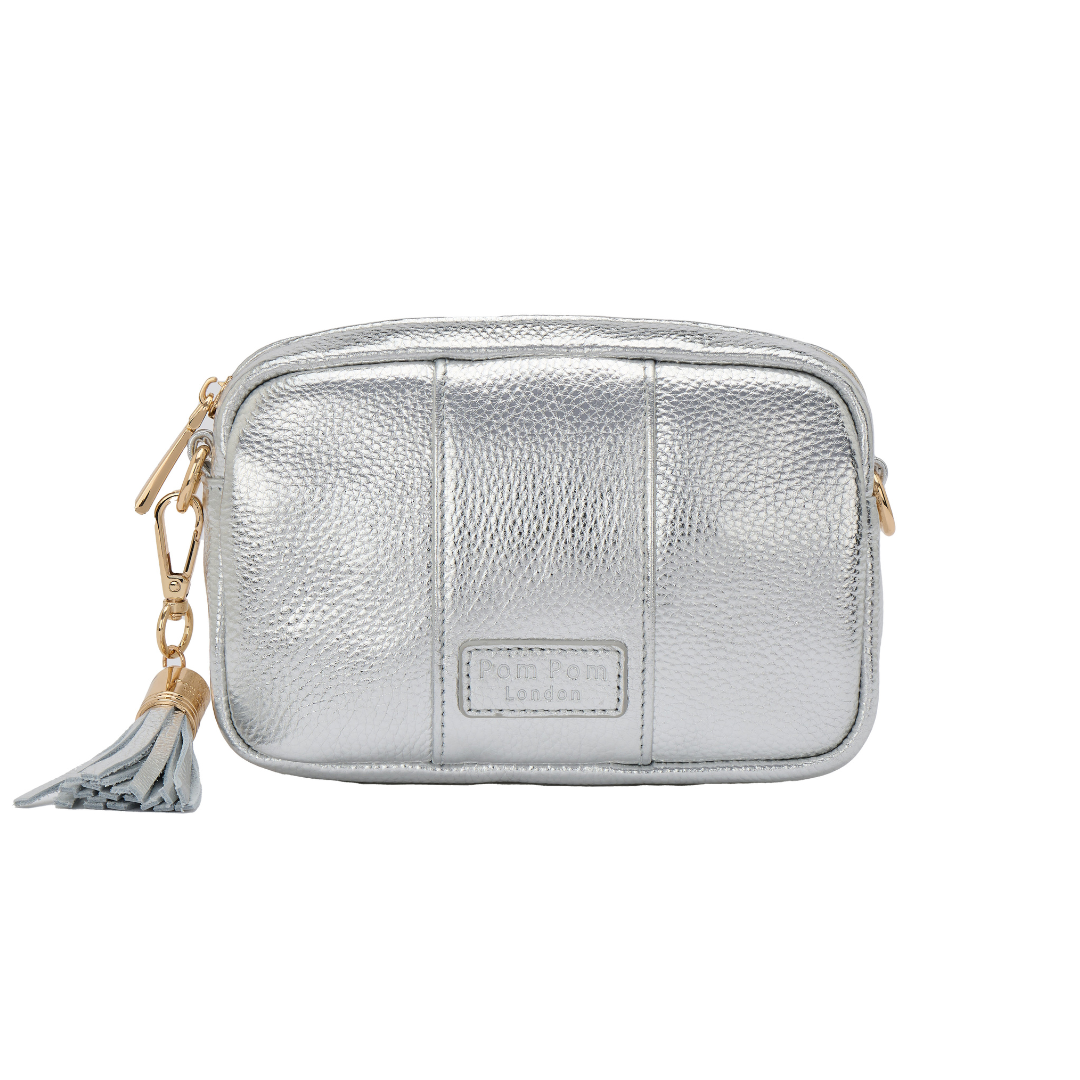- Pom Pom London City Mini Bag in Metallic Silver - A small crossbody that shines from day to night.