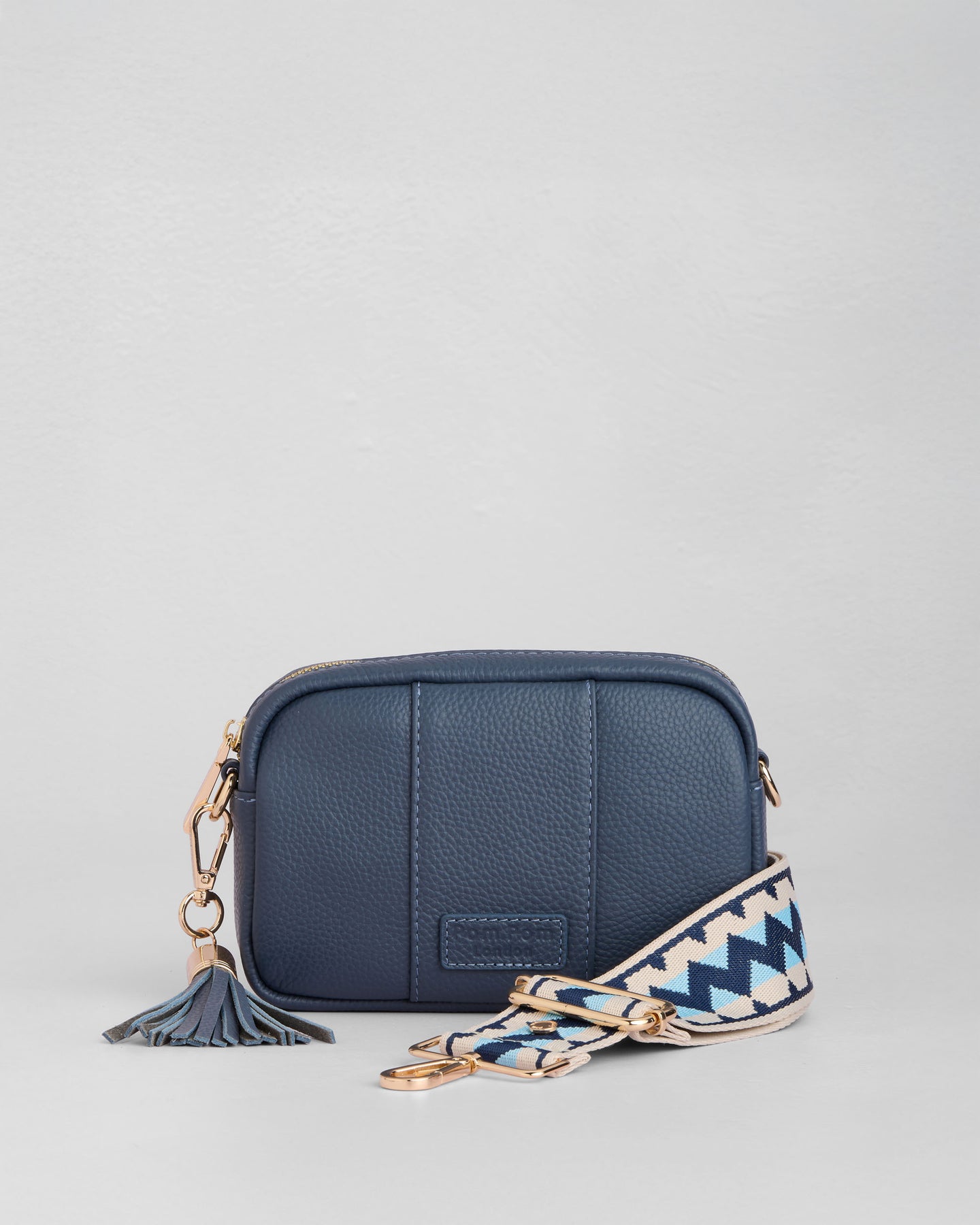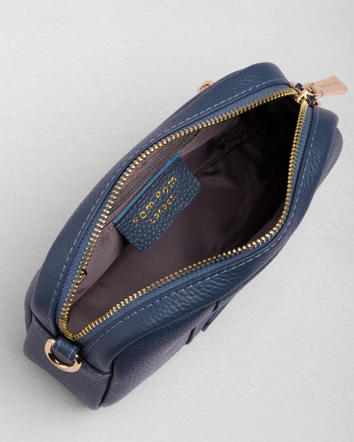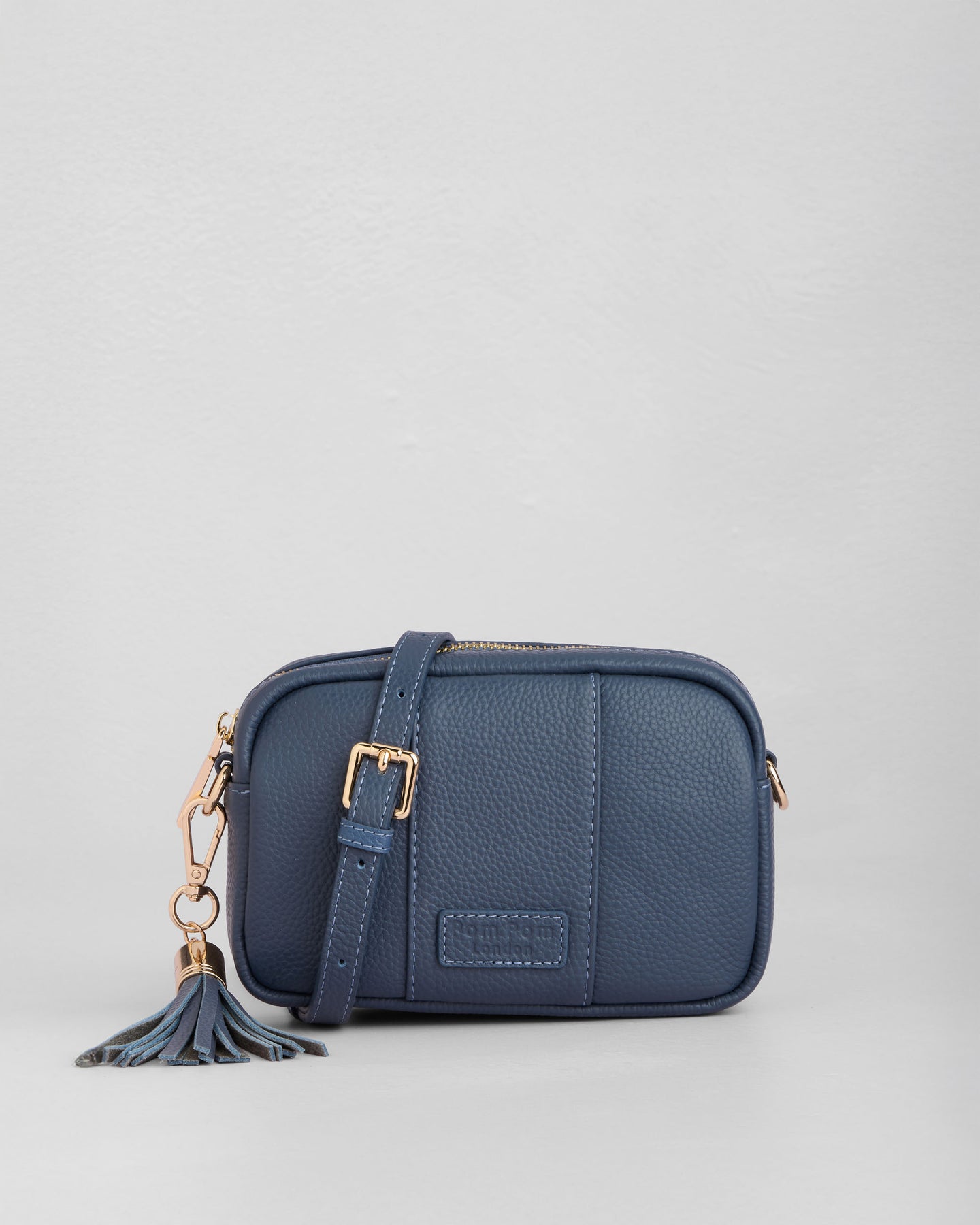 Pom Pom London City Mini Bag in Slate Blue - A classic crossbody bag in a timeless core colour.