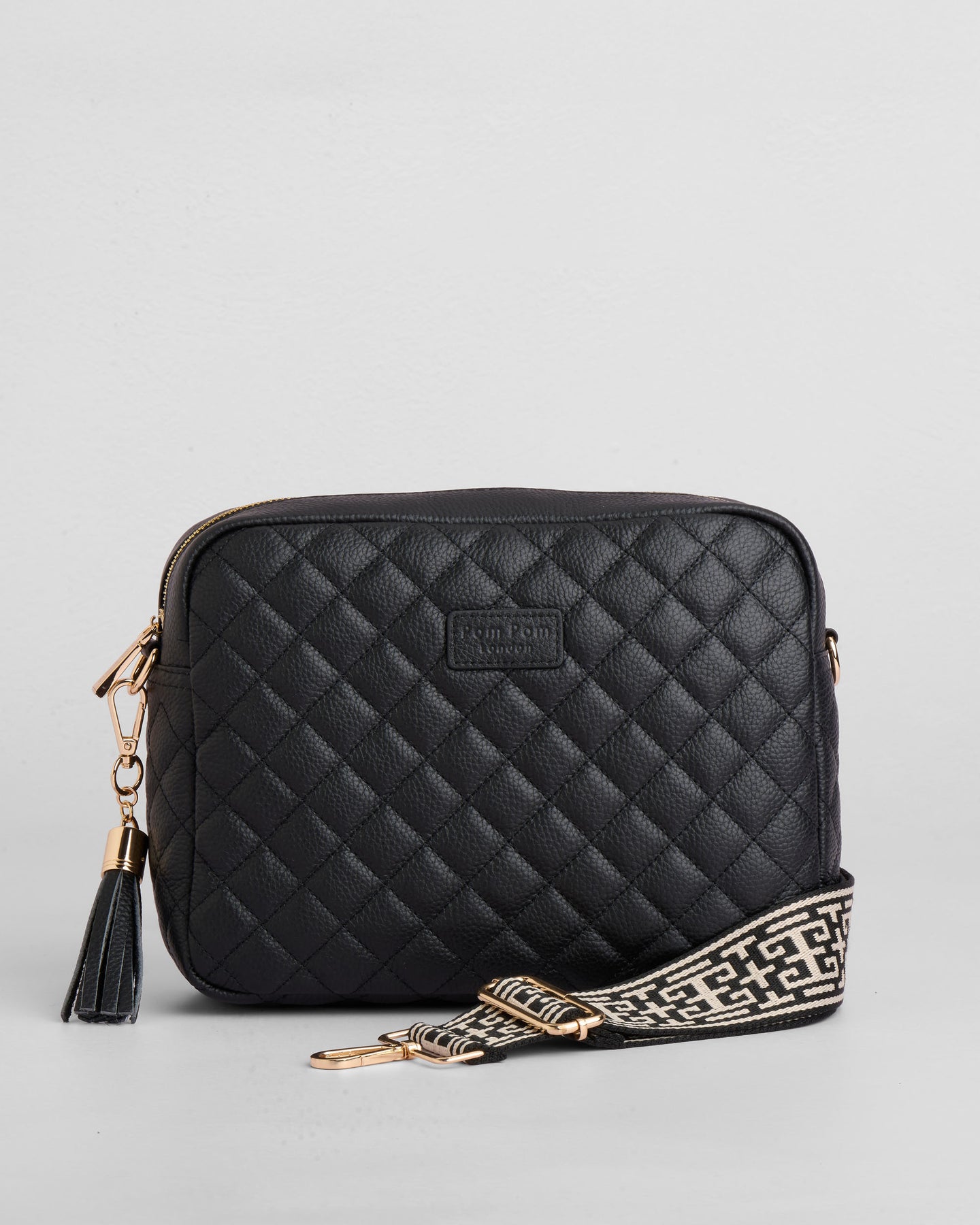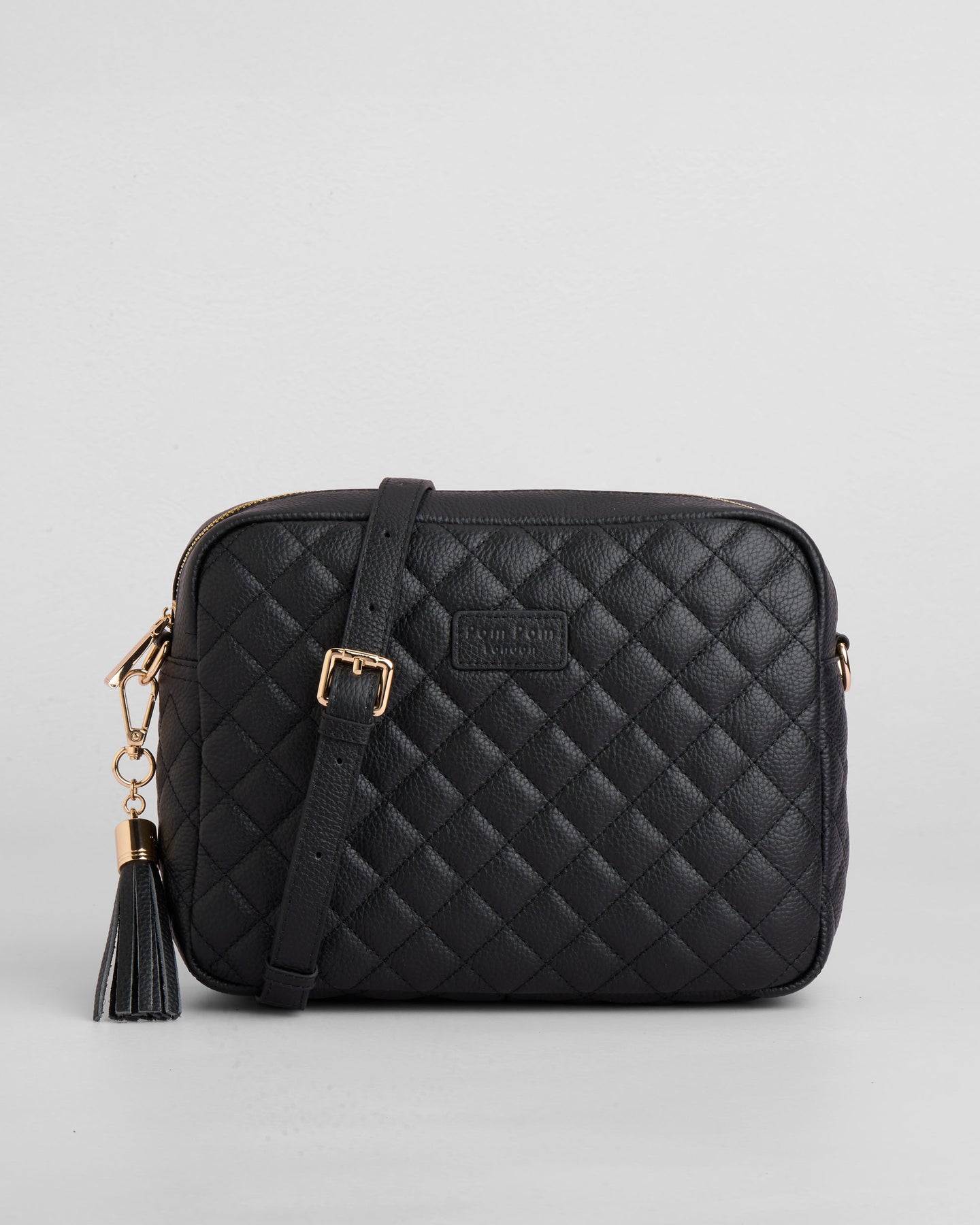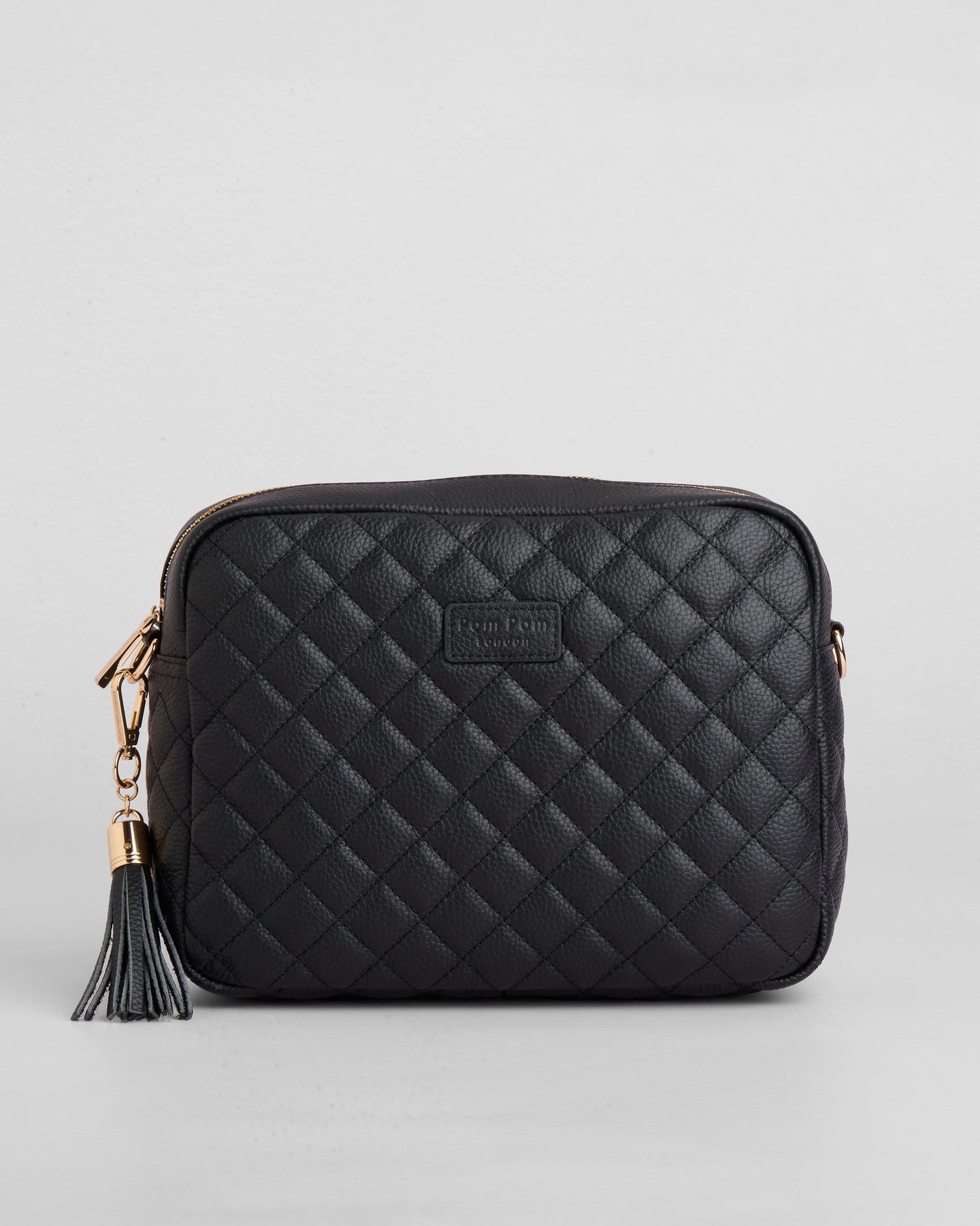 - Pom Pom London Quilted City Plus Bag in Black - A stylish crossbody crafted in quilted full grain leather.