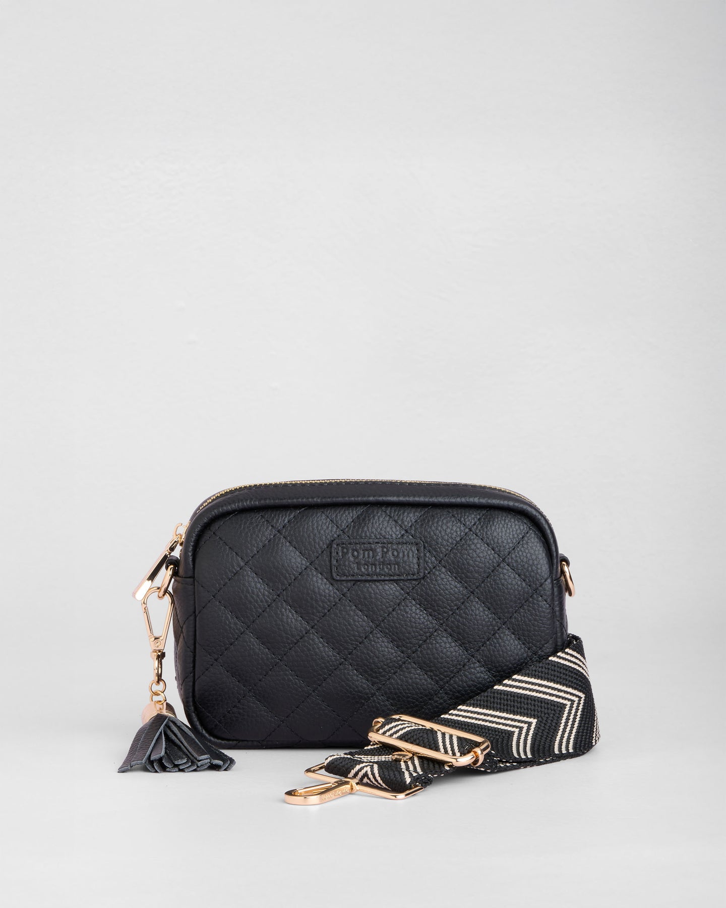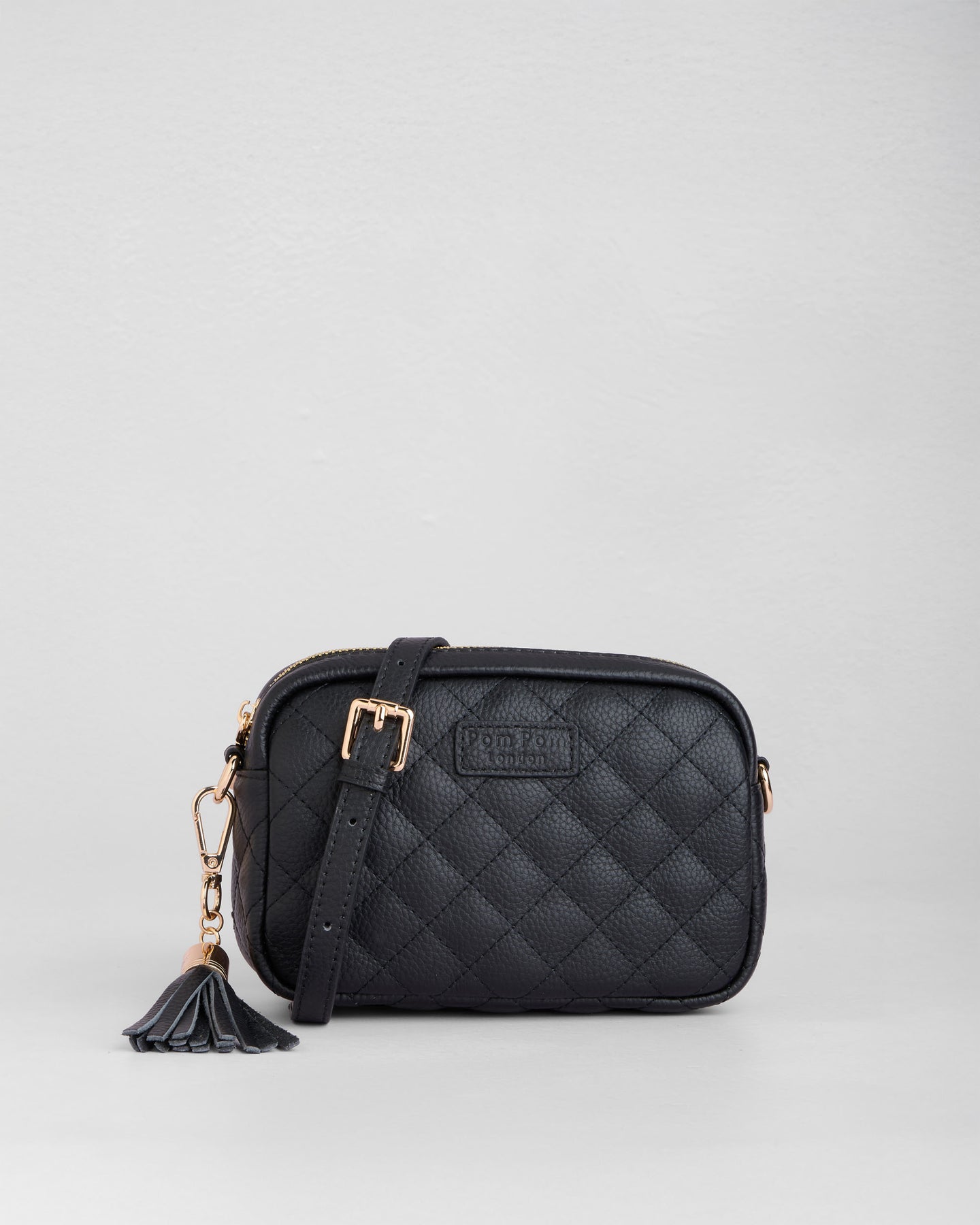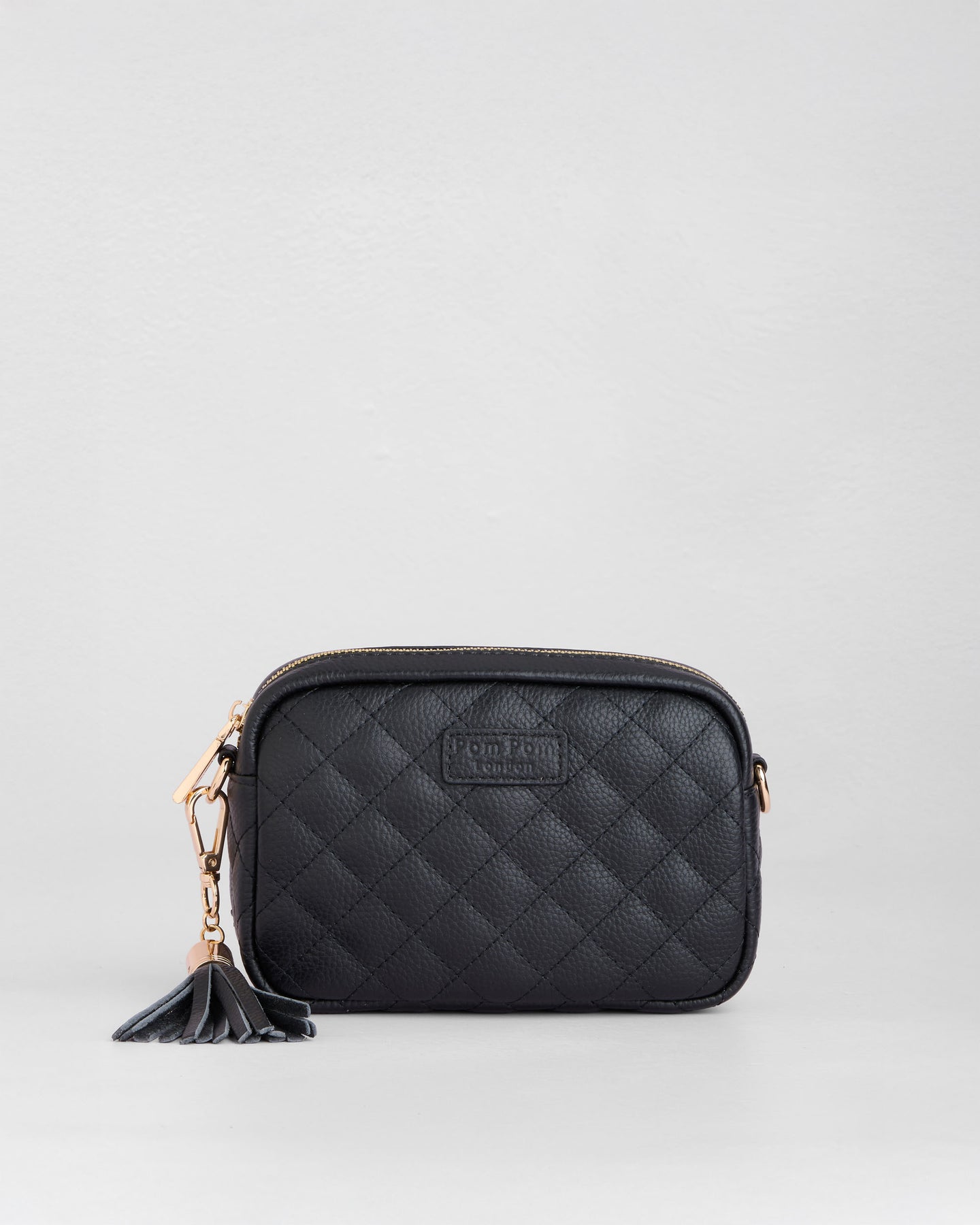 - Pom Pom London Quilted City Mini Bag in Black - A stylish crossbody crafted in quilted full grain leather.