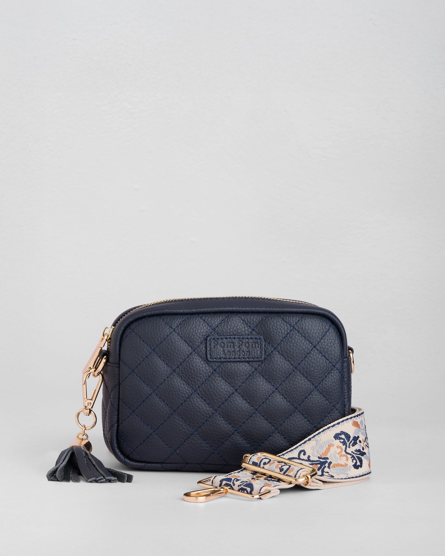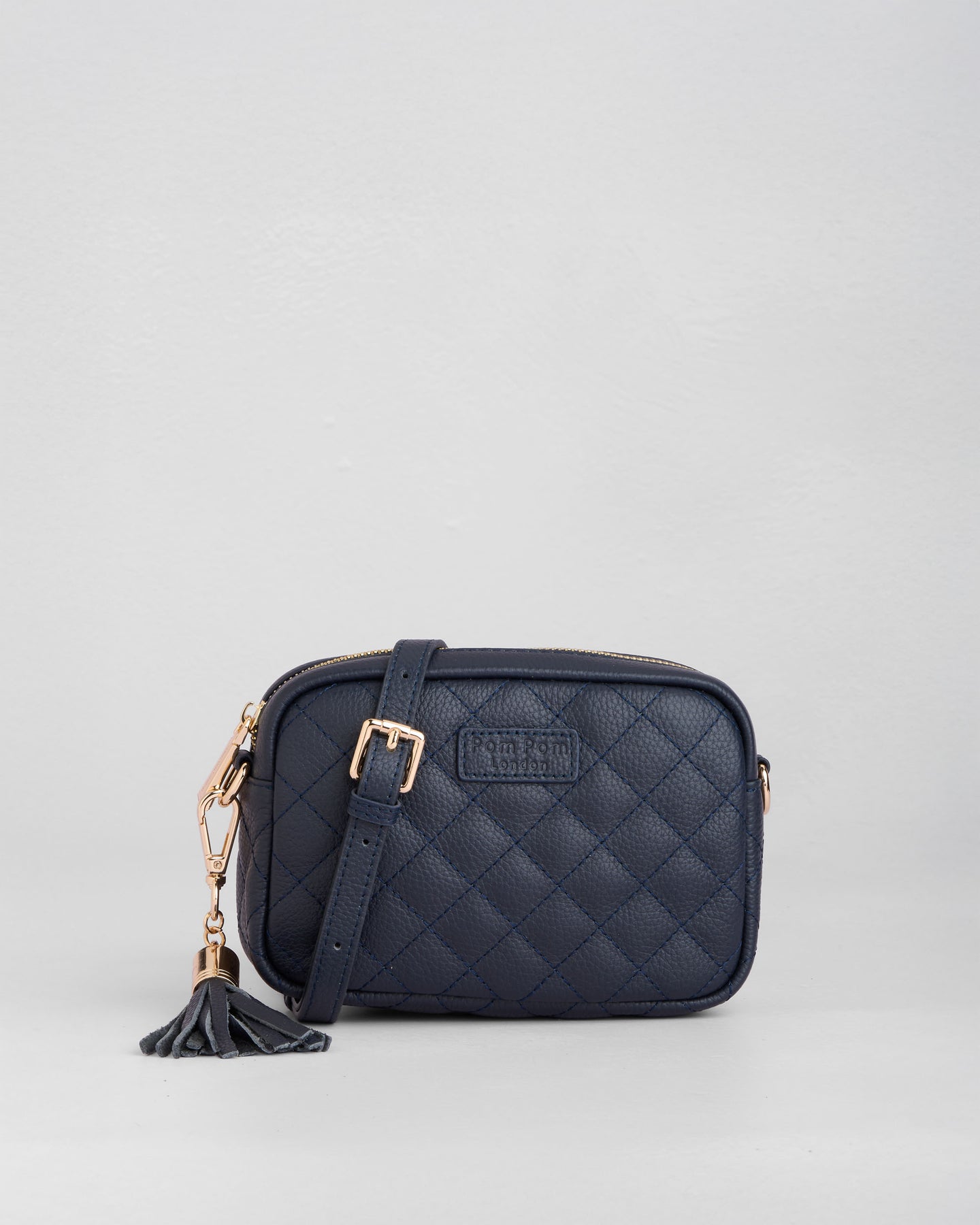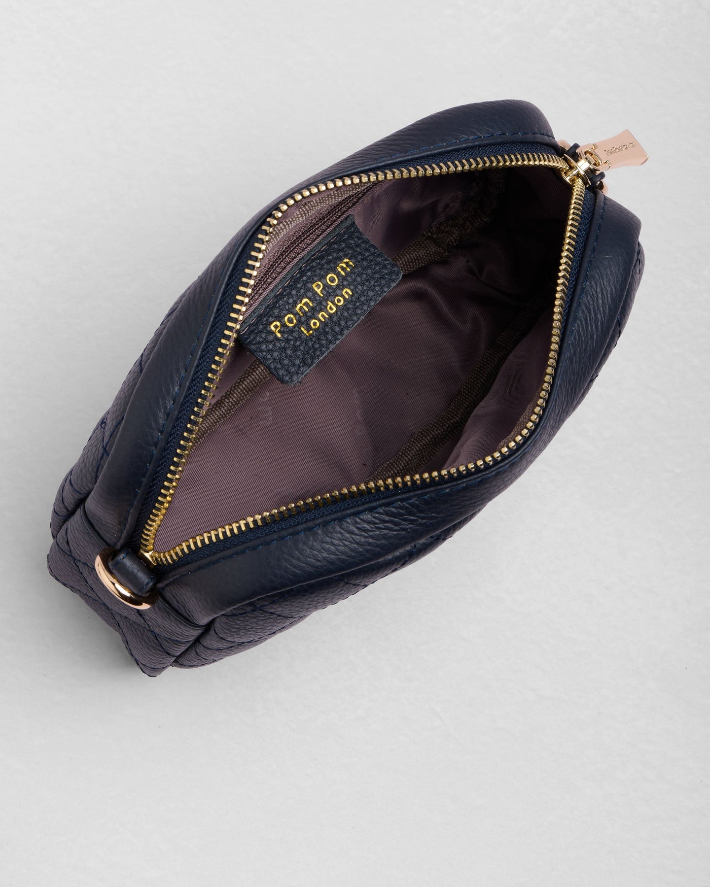 - Pom Pom London Quilted City Mini Bag in Navy - A stylish crossbody crafted in quilted full grain leather.