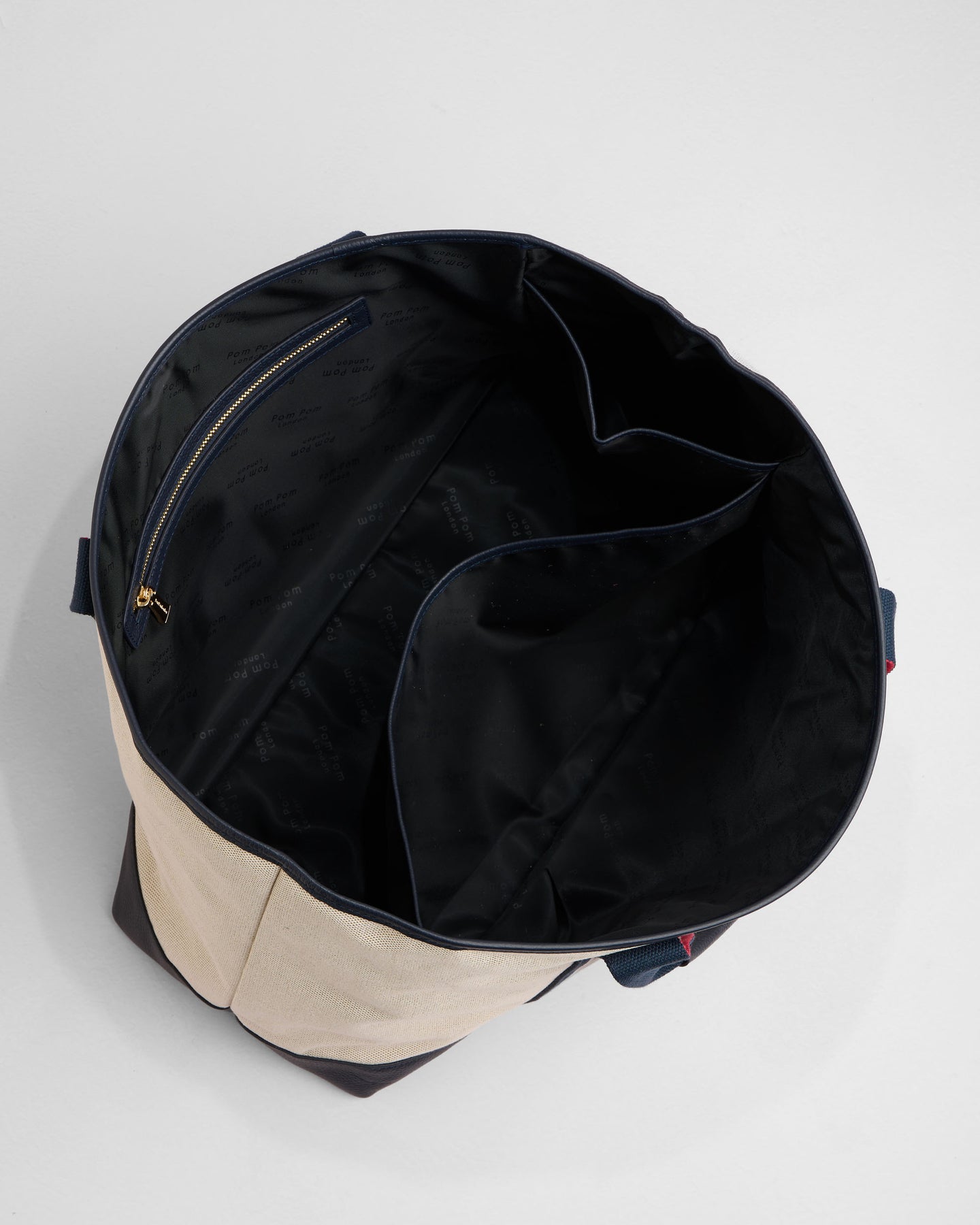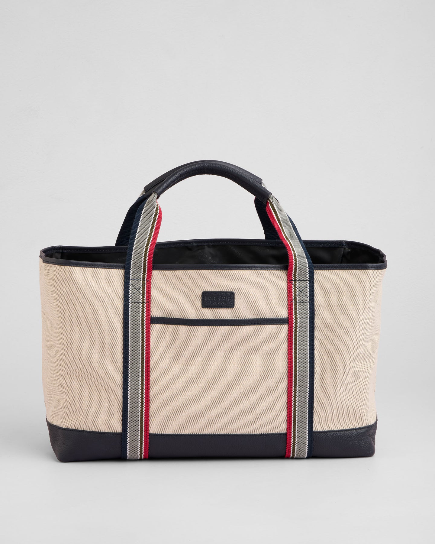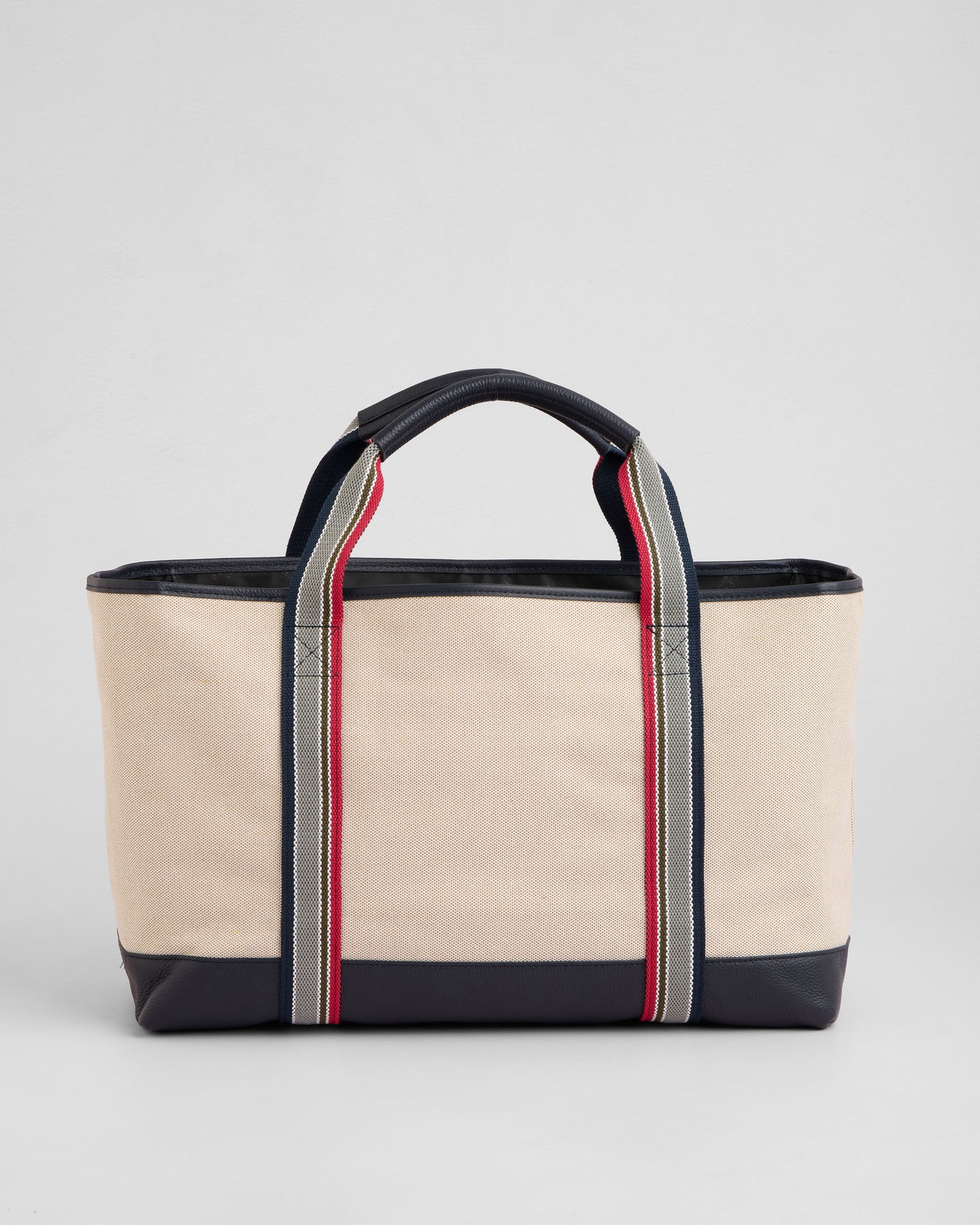 Introducing the Padstow Tote Bag Navy. Perfect for around town, going to the beach or as a carry on flight bag. Made in a wipe down canvas and edged in leather it is a perfect allrounder.