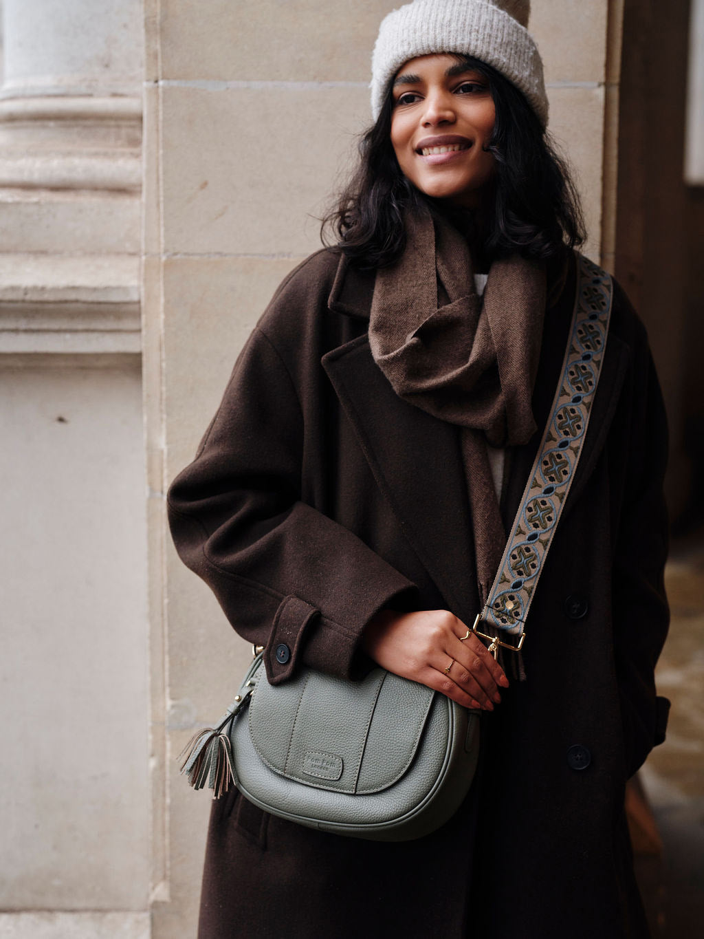 A modern classic, designed for effortless everyday wear. With its softly structured silhouette, tactile leather finish, and subtle tassel detail, it brings a relaxed elegance to any look. Compact yet practical, it’s finished with an adjustable strap for hands-free ease, making it the ideal companion from morning errands to evening plans.