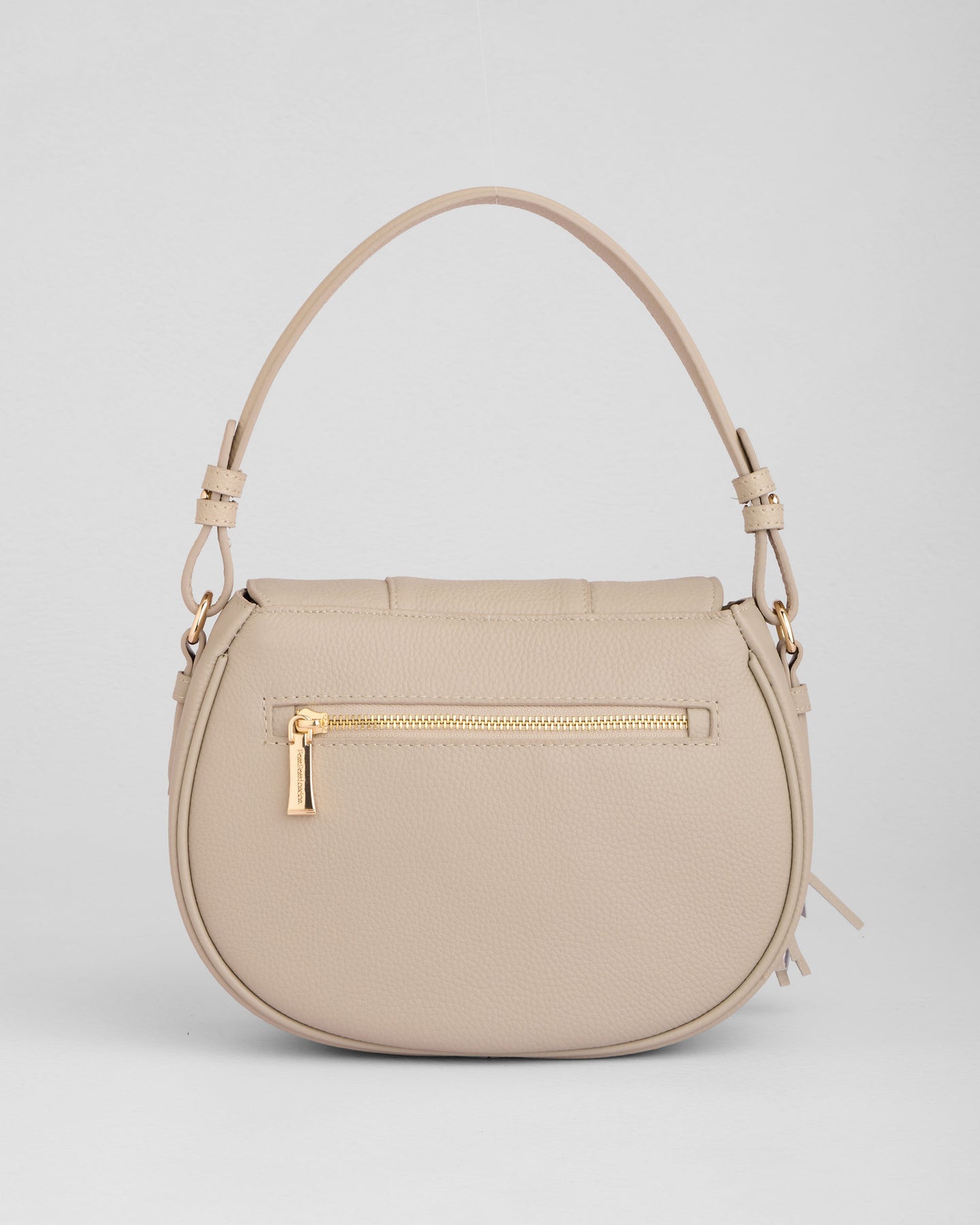 A modern classic, designed for effortless everyday wear. With its softly structured silhouette, tactile leather finish, and subtle tassel detail, it brings a relaxed elegance to any look. Compact yet practical, it’s finished with an adjustable strap for hands-free ease, making it the ideal companion from morning errands to evening plans.